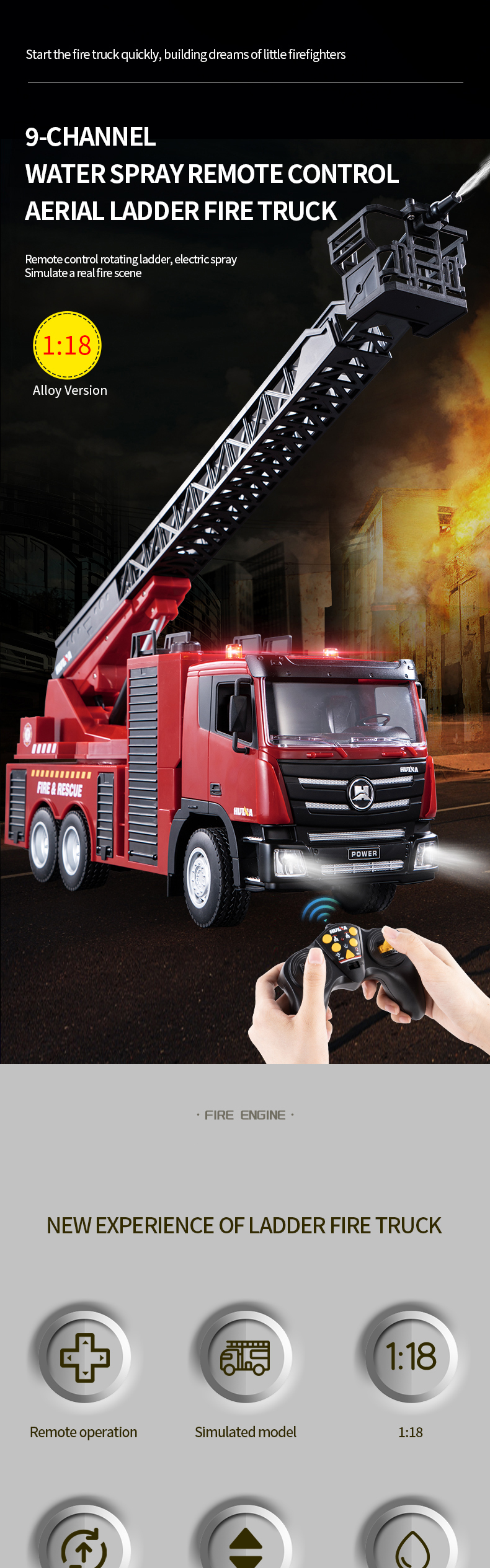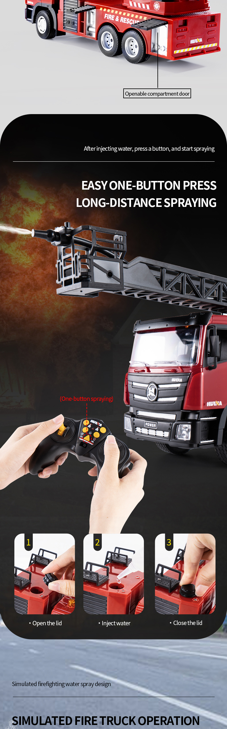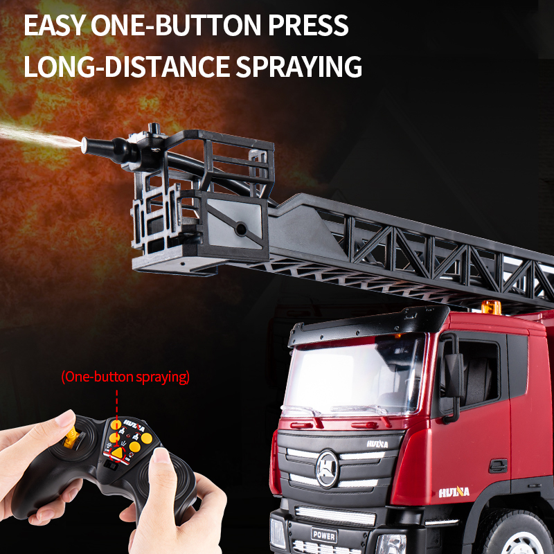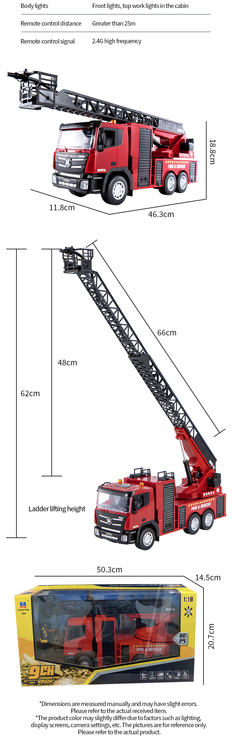 2.4g hz frequency, remote control distance ≥25 meters. Nine-channel control, using large-capacity lithium battery, powerful power, with water spraying, forward, backward, left and right, right turn, rotary table around automatic display and light switch and other functions