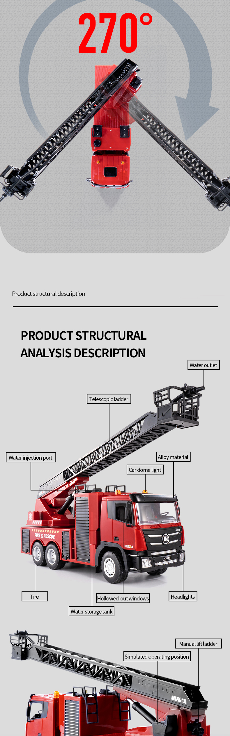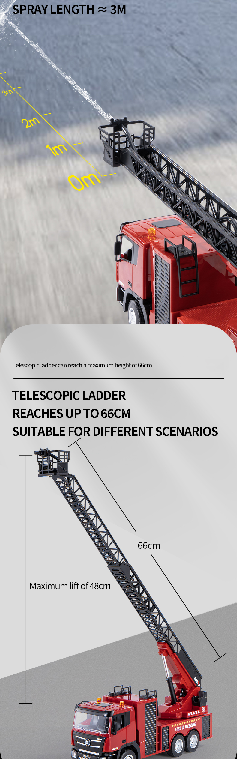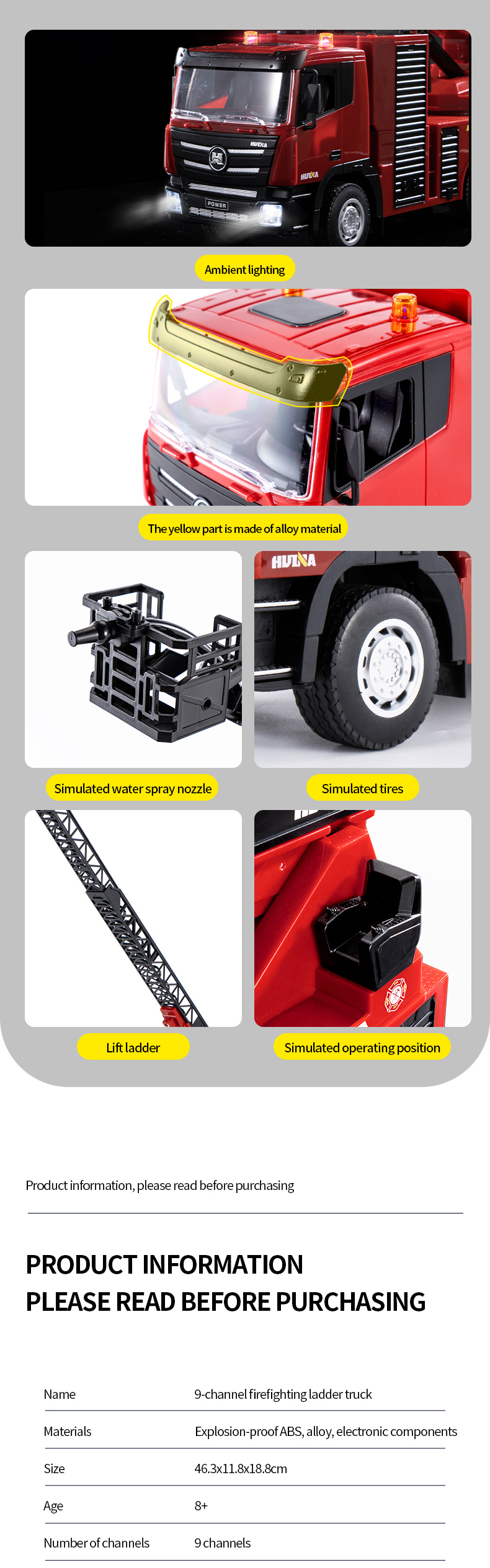 2.4g hz frequency, remote control distance ≥25 meters. Nine-channel control, using large-capacity lithium battery, powerful power, with water spraying, forward, backward, left and right, right turn, rotary table around automatic display and light switch and other functions