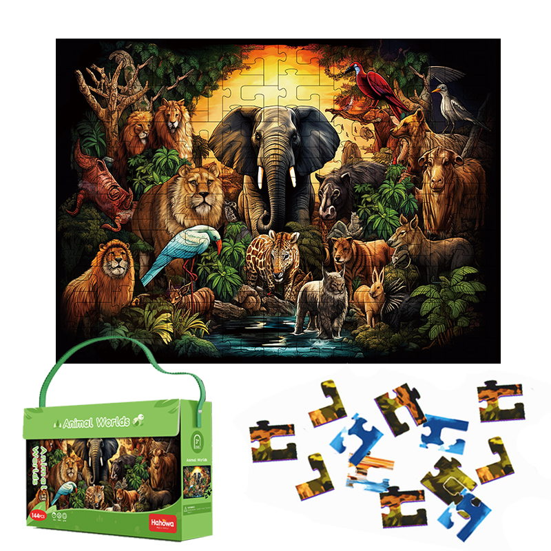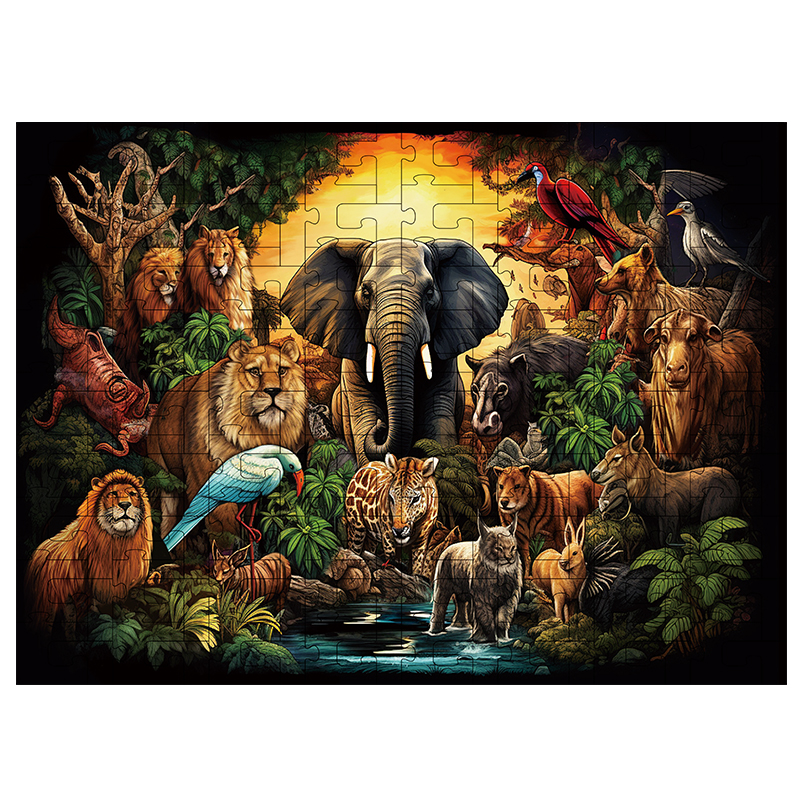 Our jigsaw puzzle whisks you into the heart of an enchanting animal kingdom. This captivating tableau showcases a harmonious gathering of creatures from the forest, grasslands, and the skies above. Amid lush greenery and vibrant blossoms, you'll find a bustling array of wildlife: majestic elephant, playful rabbits, and a chorus of colorful birds. As you piece it together, you'll embark on a delightful journey through diverse ecosystems. It's not just a puzzle; it's a captivating exploration of nature's wonders. Prepare to be charmed by this lively menagerie of animals in their natural habitats, a true celebration of the beauty of the wild!