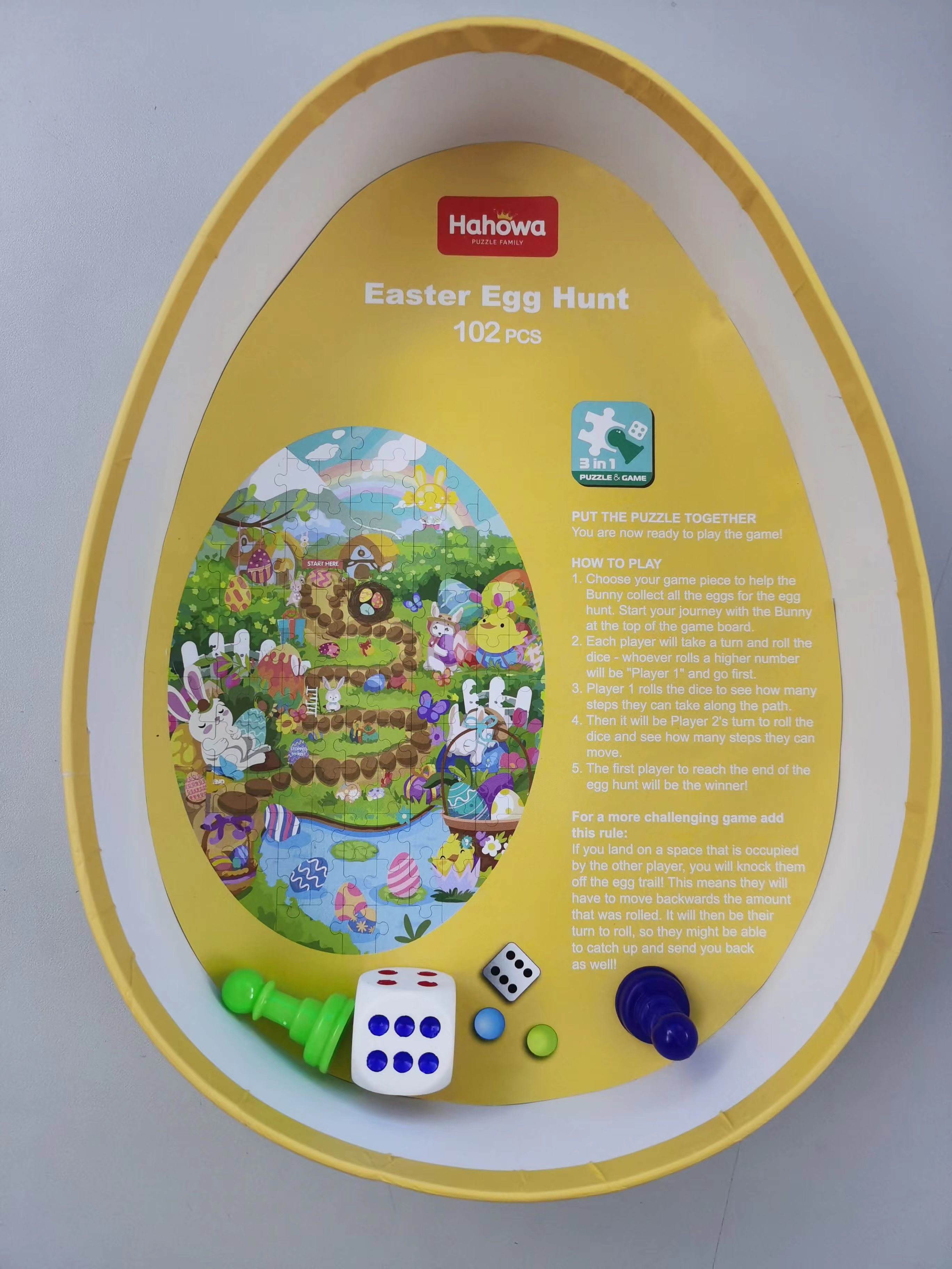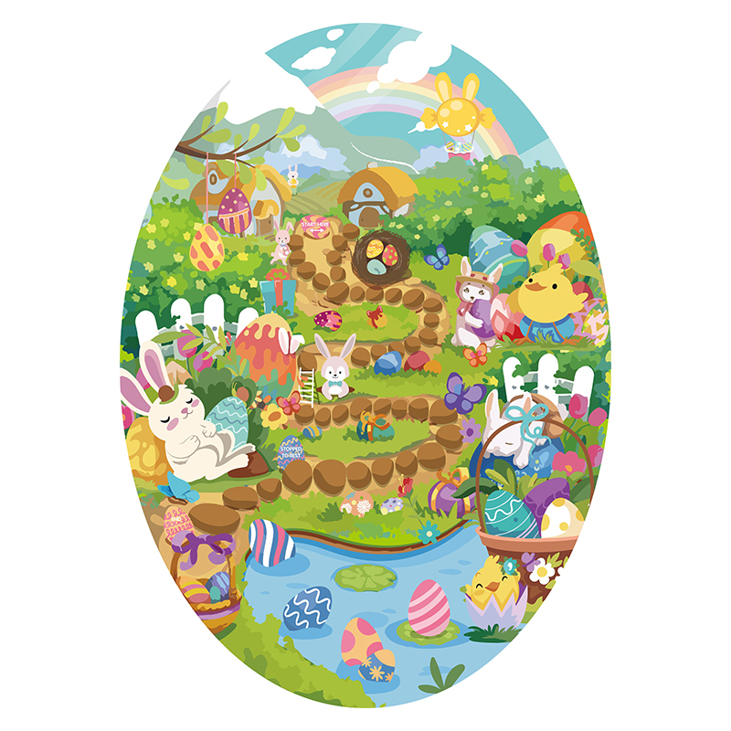 On Easter, little Peter Rabbit and his friends play a jigsaw puzzle game of searching for Easter eggs. They move by rolling the dice, complete the game challenges, and collect Easter eggs and treasures. From that day on, every Easter, Peter plays the Easter puzzle with his friends, searching for eggs and sharing joy. That huge Easter egg has become a precious memory they will cherish forever.