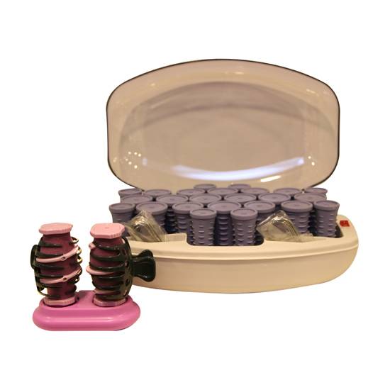 - A set of 14 or 24 heated hair rollers in various sizes.