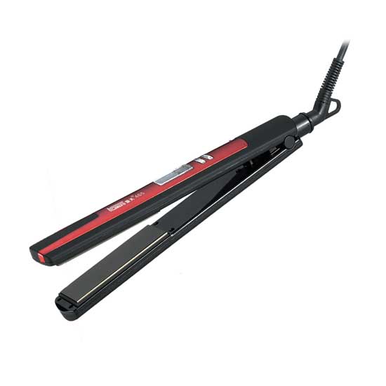 Featured is a hair straightener equipped with long titanium plates. It boasts a high warming speed and is ready to use in merely seconds. The swivel power cord provides added convenience.
