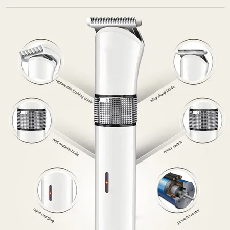 SS T-blade, rotary switch,waterproof, 2.4V 2*400mha rechargeable batteries , 8 hour charging time,40 minutes running time 3/6/9/12 MM adjustable comb