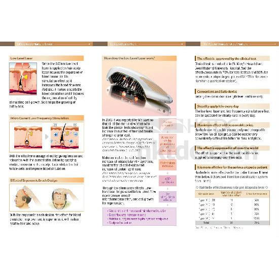 With the effective massage effect by giving tension and relaxation with the current stimulation by applying electric micro current on scalp, it stimulates the hair follicle cells and improve blood circulation.