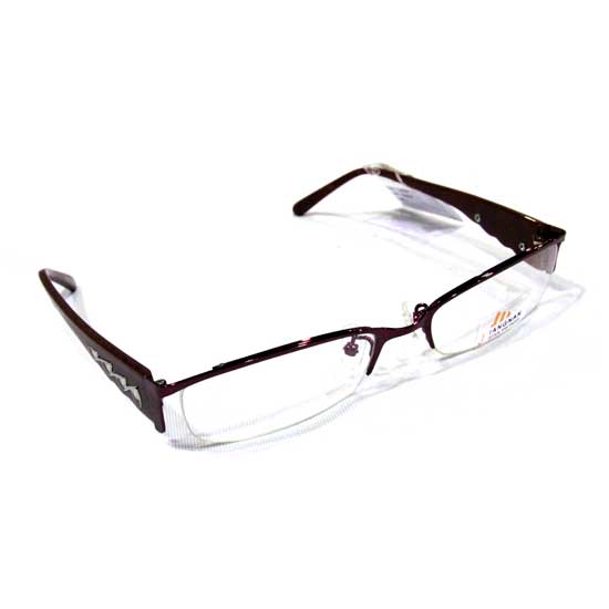 This optical frame features a half-rim style in a metallic tone. The temples feature embossed patterns to exude a sense of elegance. The lightweight structure makes it great for casual wearing.