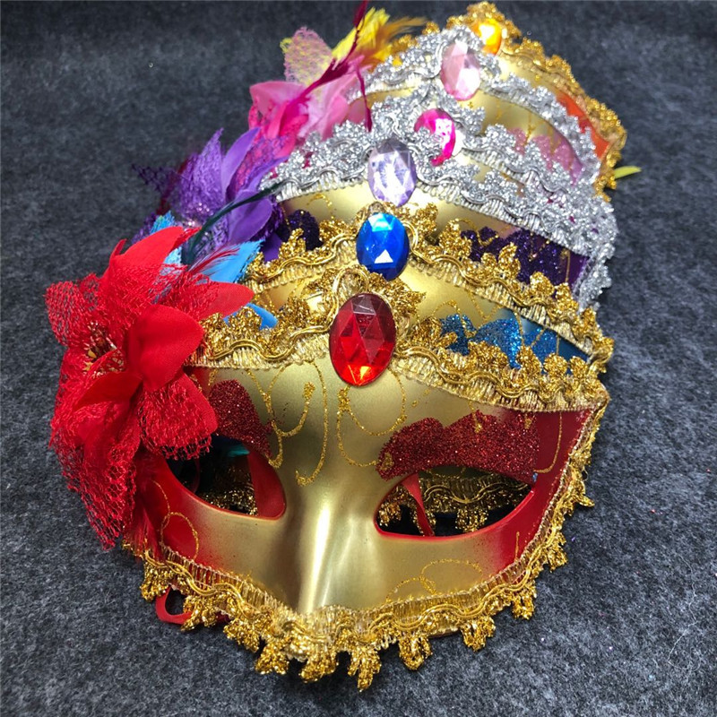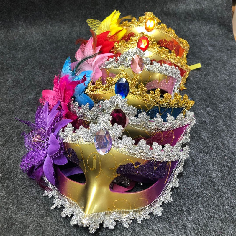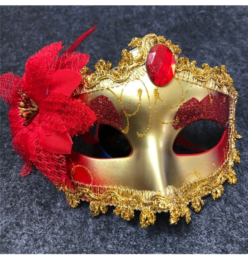 Halloween Masquerade Mask Half Face Venice Princess Plus Flower Mask Children's Party Mask Halloween mask Men and Women