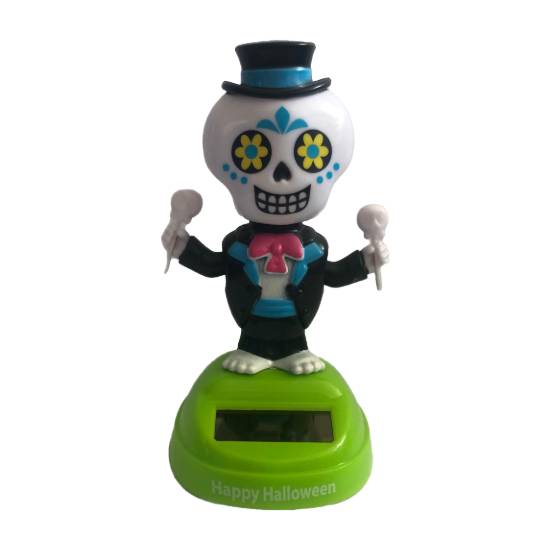 Plastic Skeleton with skull maracus on a solar panel, it dances and moves under the light, suitable for indoor/ outdoor decoration.