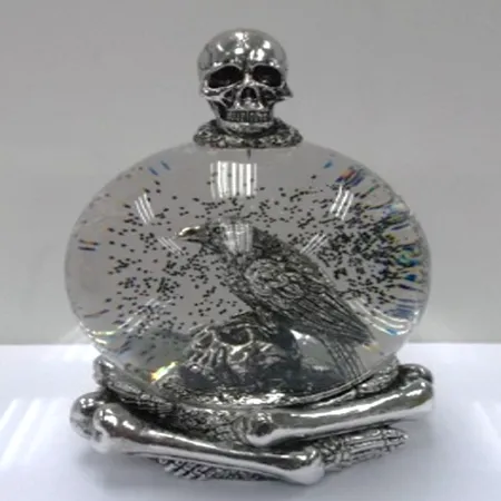 Polyresin/Glass skeleton waterglobe with crow inside