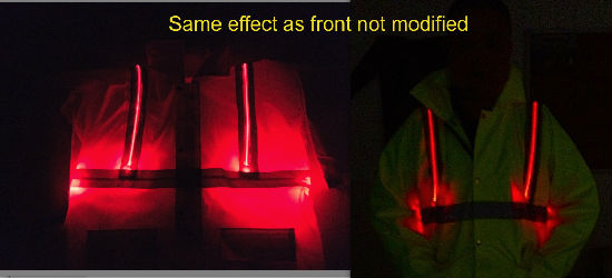 Compared to other lighting technology the light on Haloglowed outerwear does not discolour or dazzle. The light is powered by standard cell batteries that are easily replaced. Haloglowed outerwear is unique due to: