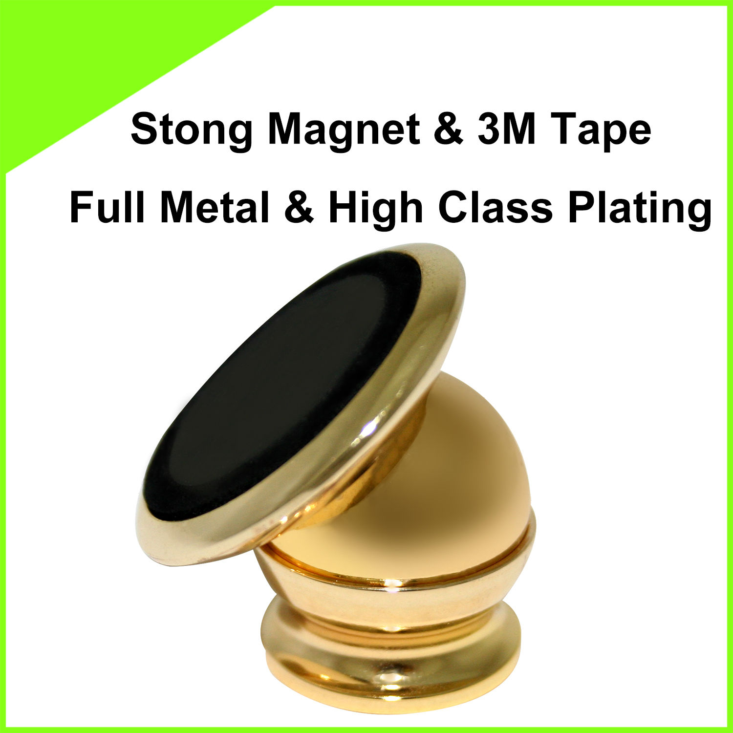 Metal Plating Mobile Phone Hand free Car Holder with Strong Magnet for Any Size Cell Phone PDA & GPS Key Specifications/Special Features: - Fashion full metal & shining plating. - Place angle can be changed to any angle very easy. - 360 degree raotation for easy using. - Strong magnet for easy attract & no sliding. - 3M tape for strong paste on panel. - Rubber inside to prevent sliding. - Single hand easy place easy remove. - Suit for any size of mobile phone. - Suit for smart phone / tablets / PDA / PAD / GPS etc. - Resistance high or low temperature no drop down. - Personal brand or LOGO can be print on the product - Small order & OEM can be accepted. - High class gift box can be print customer LOGO. - Delivery time: 1-15 days depend on order quantity - One Year Warranty - Best low price gift for whole sale or distributor Primary Competitive Advantages: - Fashion full metal & shining plating. - 360 degree raotation for easy using. - Strong magnet for easy attract & no sliding. - 3M tape for strong paste on panel. - Rubber inside to prevent sliding. - Suit for any size of mobile phone. - Resistance high or low temperature no drop down. - Personal brand or LOGO can be print on the product - Small order & OEM can be accepted. Package list 1 Base unit , 1 Magnet Sucker, 1 Sheet Iron, 3M Tape. Main Dimension: 38mm*38mm*33mm Main weight: 100g Package: color box Package Dimension: 120mm*80mm*35mm Weight: 0.15kg