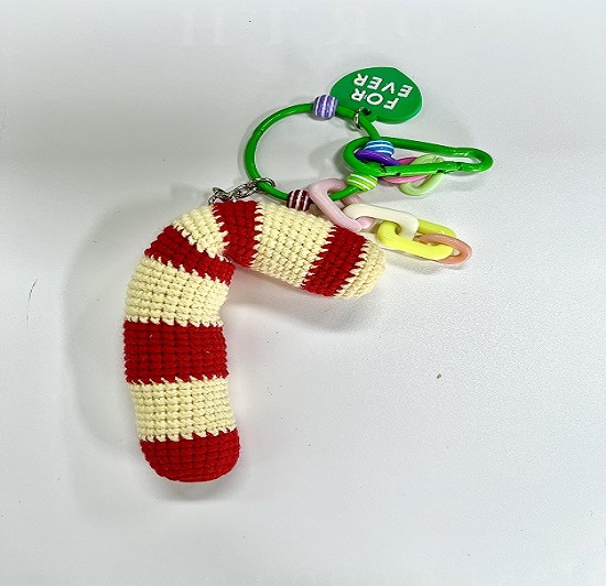 -The main body is a crocheted Christmas cane candy in red and yellow color scheme, which is cute and cartoonish, very playful
