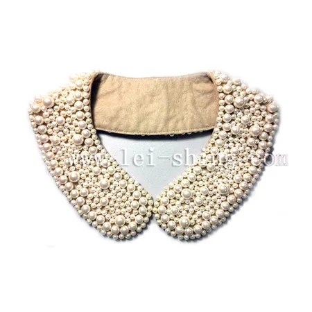 This hand sew collar comes with a khaki finish. It is studded with white beads in various sizes. It is widely applied in the manufacturing processes of garments.