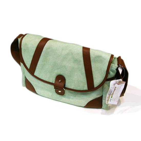 This is a green and brown coloured handbag made of polyester and PVC imitation leather. The handbag is made of environmentally friendly materials.