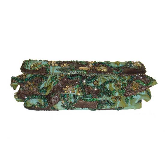 This evening bag has glass beads and sequins embedded on it, making it look elegant