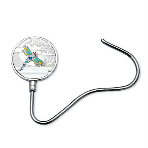 Round shape. Dragonfly design with color stones, embossed.