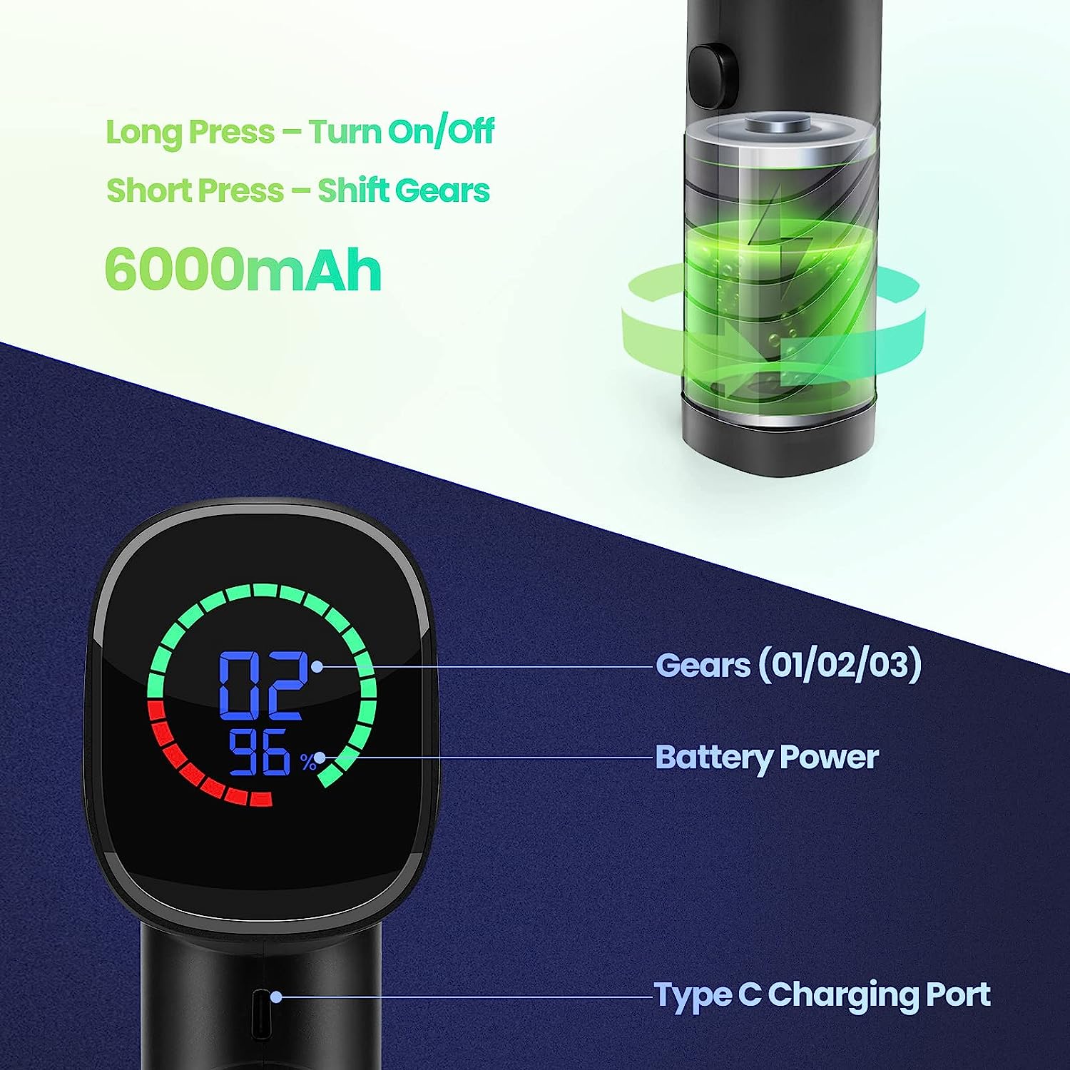 Compressed air duster【Wind Powerful with 3 Speed Modes】: air duster has 3 speed wind speeds --- Long press switch for 3 seconds can switch the device on & off. Short press switch can switch to three wind speeds for different equipment cleaning, so that dust has nowhere to stay.Cleaning will become a enjoy.