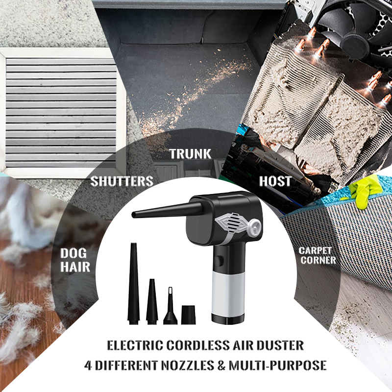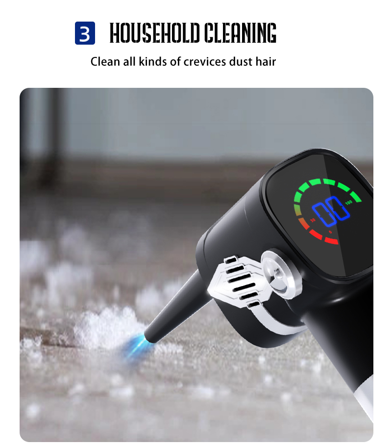 Air dusters【LED Lights & Eco-Friendly & Energy-Efficient】: Alternative to canned air Compressed Air can be recharged and used repeatedly. There are LED lights allowing you to easily clean up dark corners, bringing great convenience to your cleaning. No liquid or ice formation occurs during cleaning. It protects your electronics from liquids, so air dusters is Eco-Friendly & Energy-Efficient.
