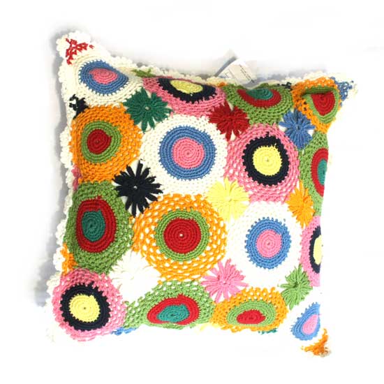 This square-shaped cushion features lively embroidered motifs on the exterior. The cushion is handmade with great attention to details. Enhance your living room or bedroom decor with this colorful cushion.