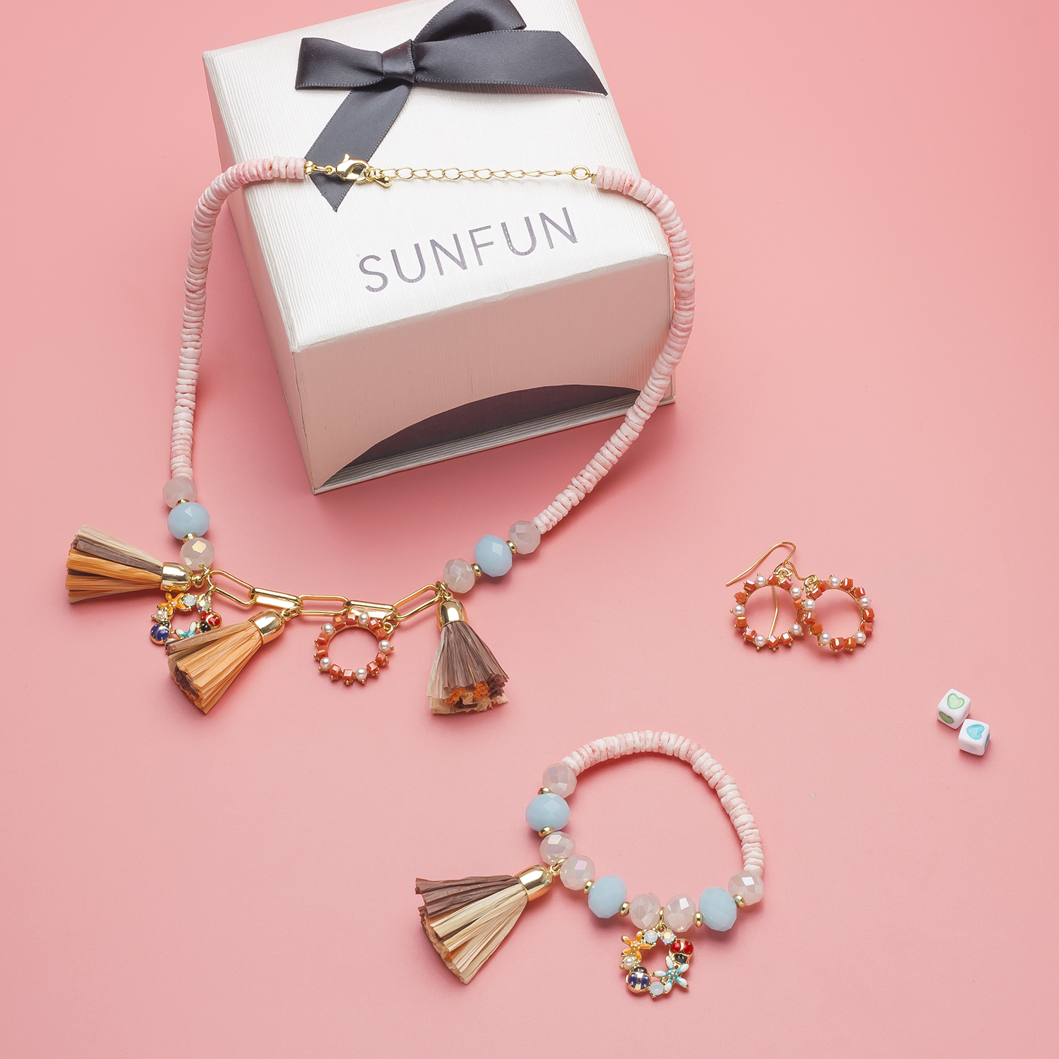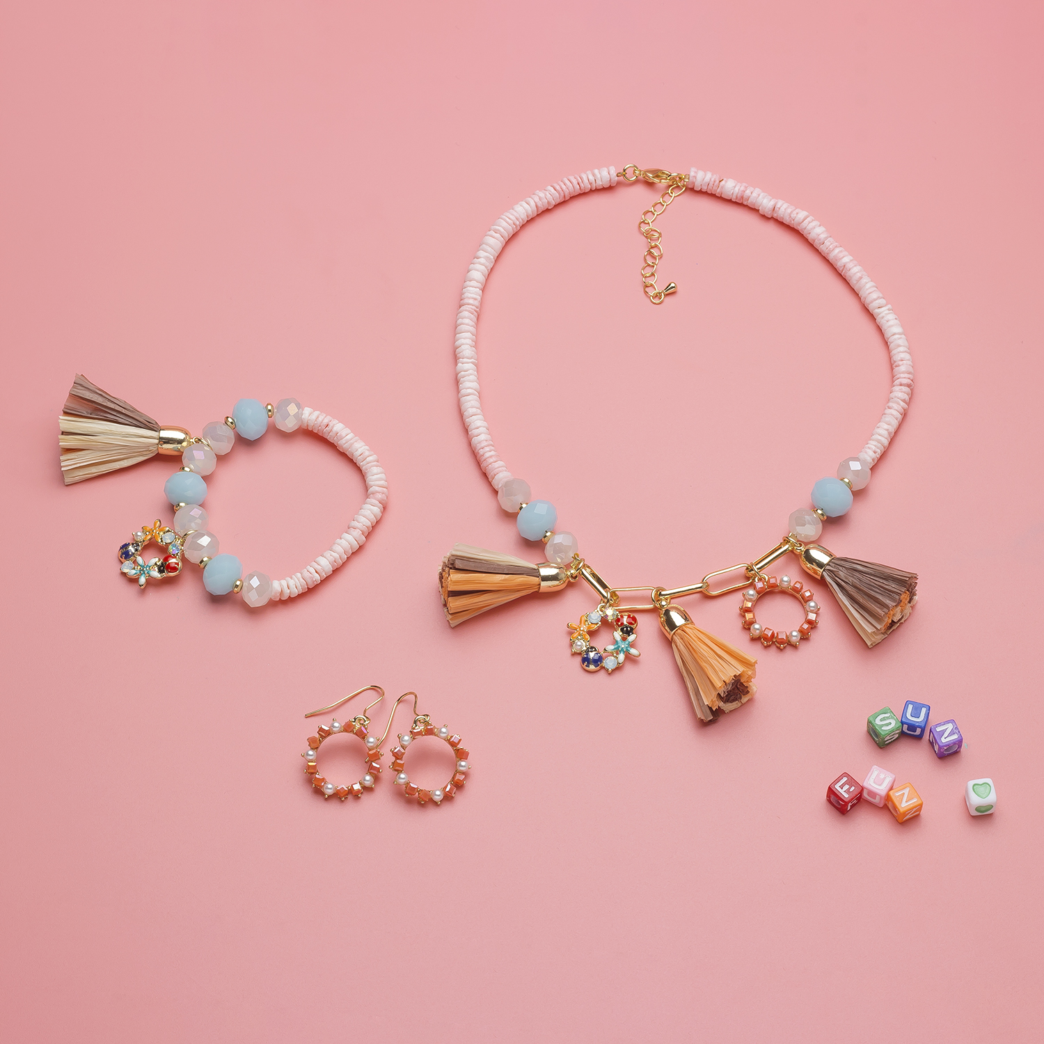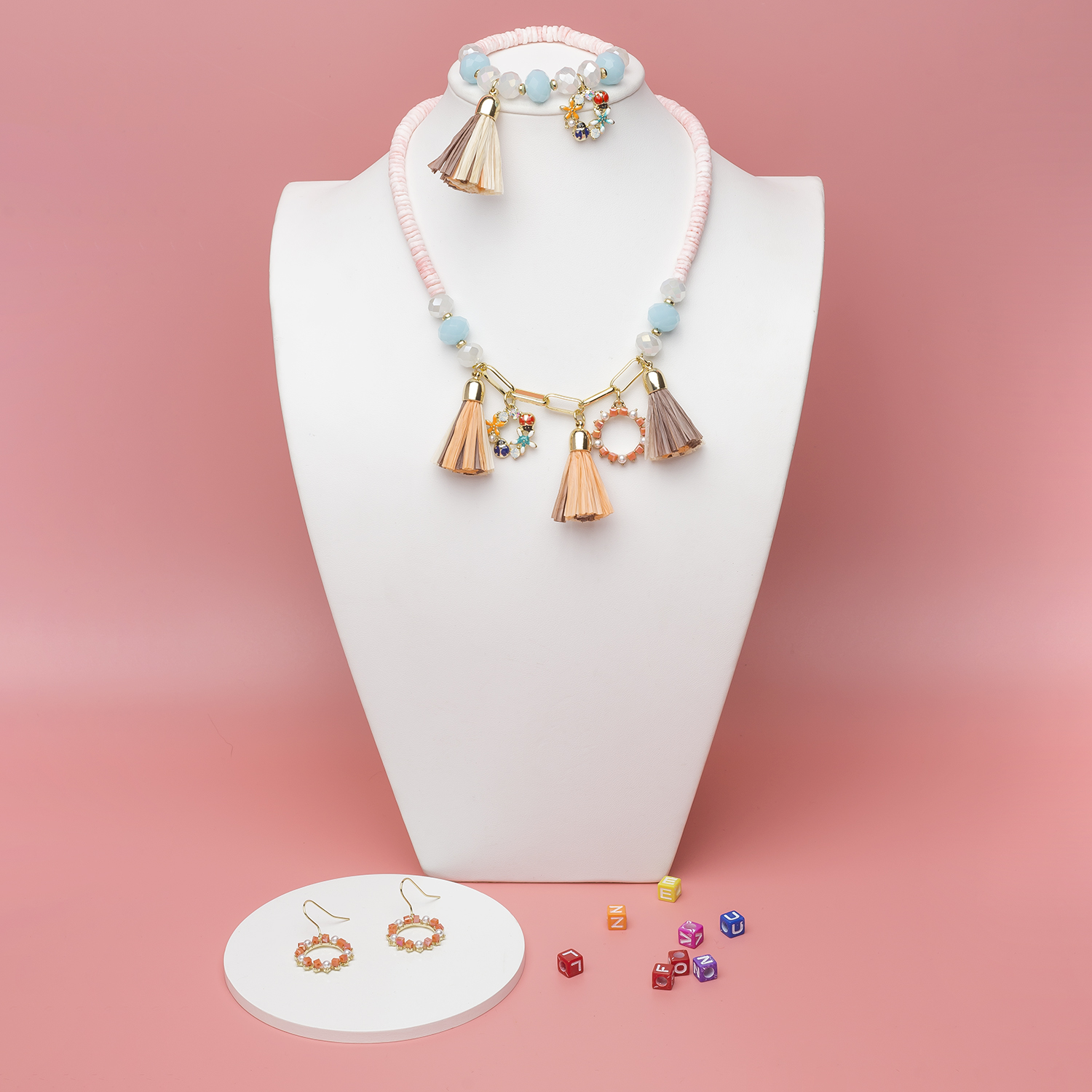 Handmade Cute and Beautiful Raffia Tassel Jewelry Sets