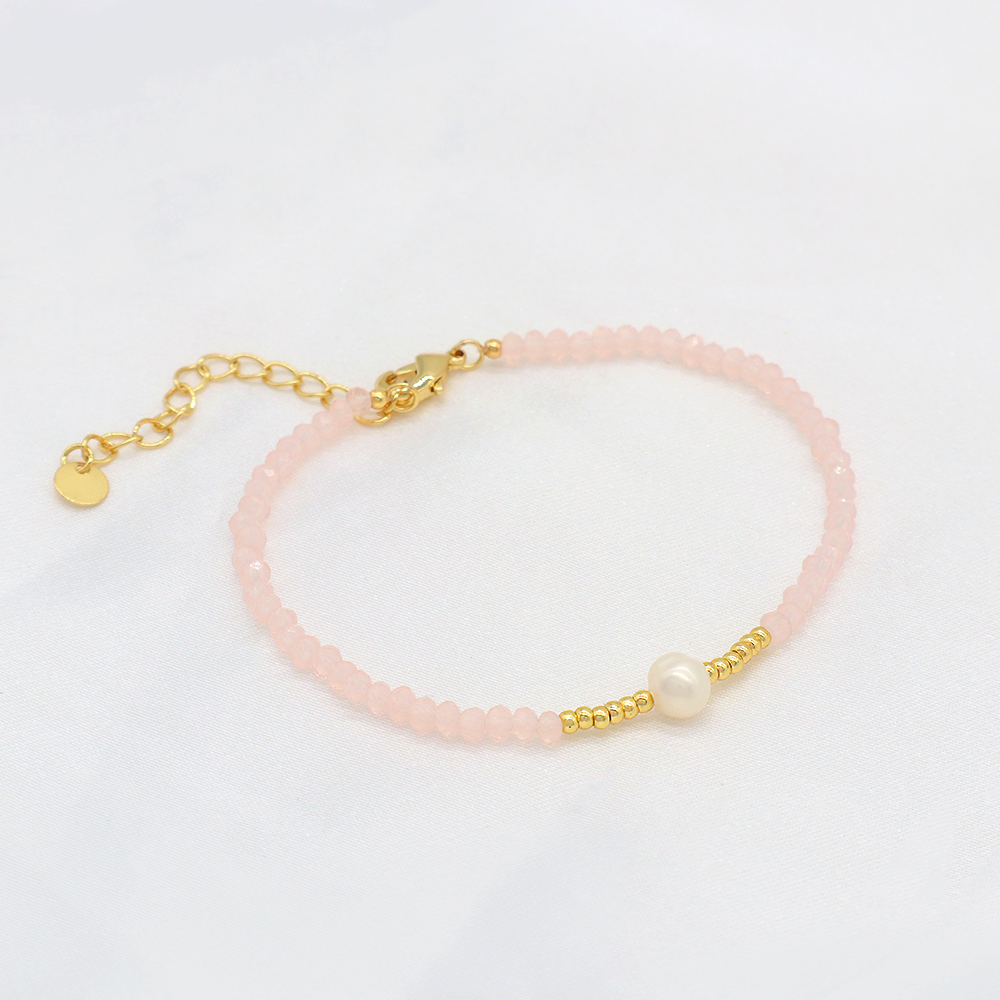 Handmade Glass Crystal Beaded With Fresh Water Pearl Bracelet