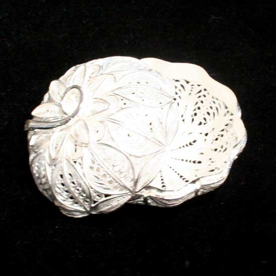 The jewelry box features a round shape with a top-lid closure for easy access. The box is fully decorated with leaf patterns for a beautiful finishing touch. This jewelry box makes a pretty way for packaging your keepsakes and accessories.