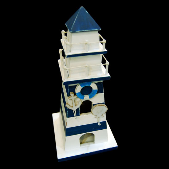 Showcased here is a creatively designed handmade lighthouse decoration. The simplistic design in blue and white is charming and fashionable. This beautiful decoration delights any interior immediately.