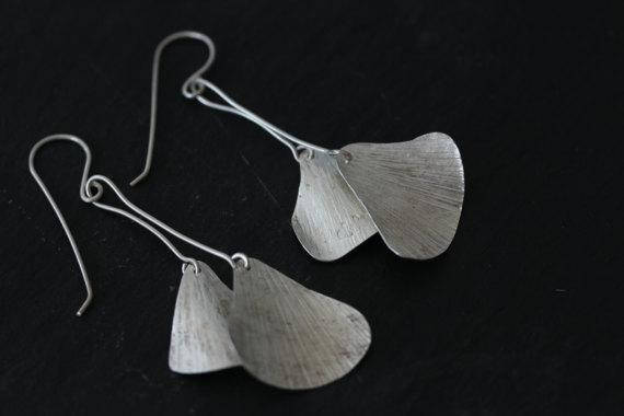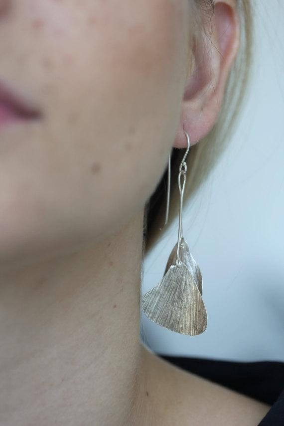 Double hanging ginkgo leaf 95% pure handmade silver earrings