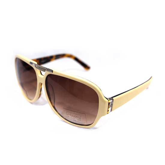 This pair of handmade sunglasses features oversized round rims in a creamy white tone. It is complemented by tea-brown lenses that can shield scorching sunlight effectively. The silvery metal details at the top bar and temples lend extra style.