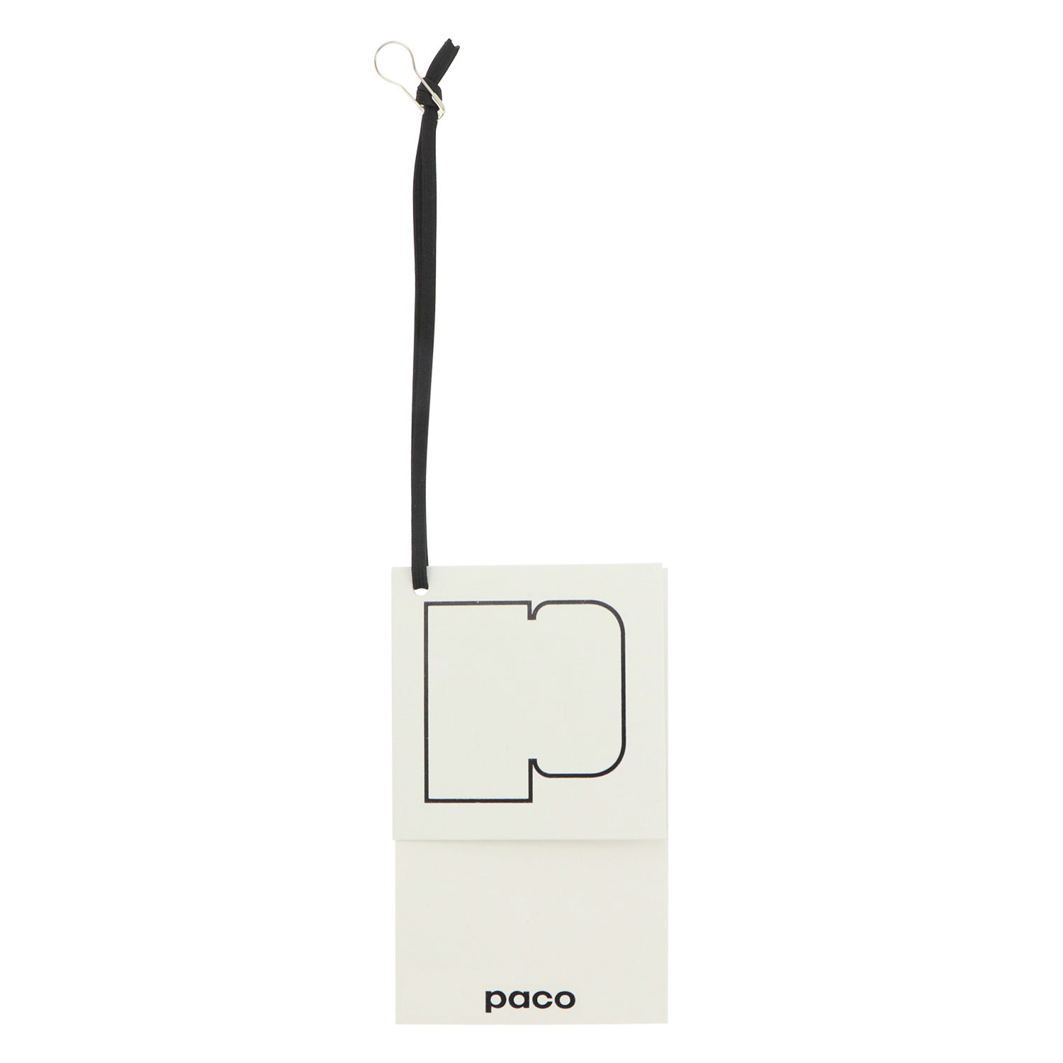 Show logos and product information on garment products with this hang tag. It is made of paper and is processed with debossing and black color foil stamping. This paper hang tag has a string for attachment and flaunts a simple and elegant design.