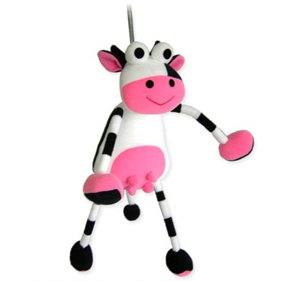 This hanging decoration is designed as a cute cow. It is made of polyester fabric; while the stuffing is formed by Styrofoam stuffing. It is cute and is favored by children.