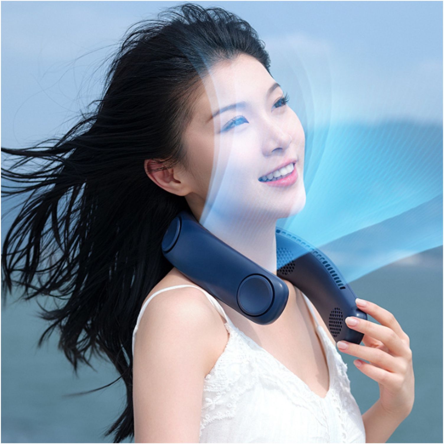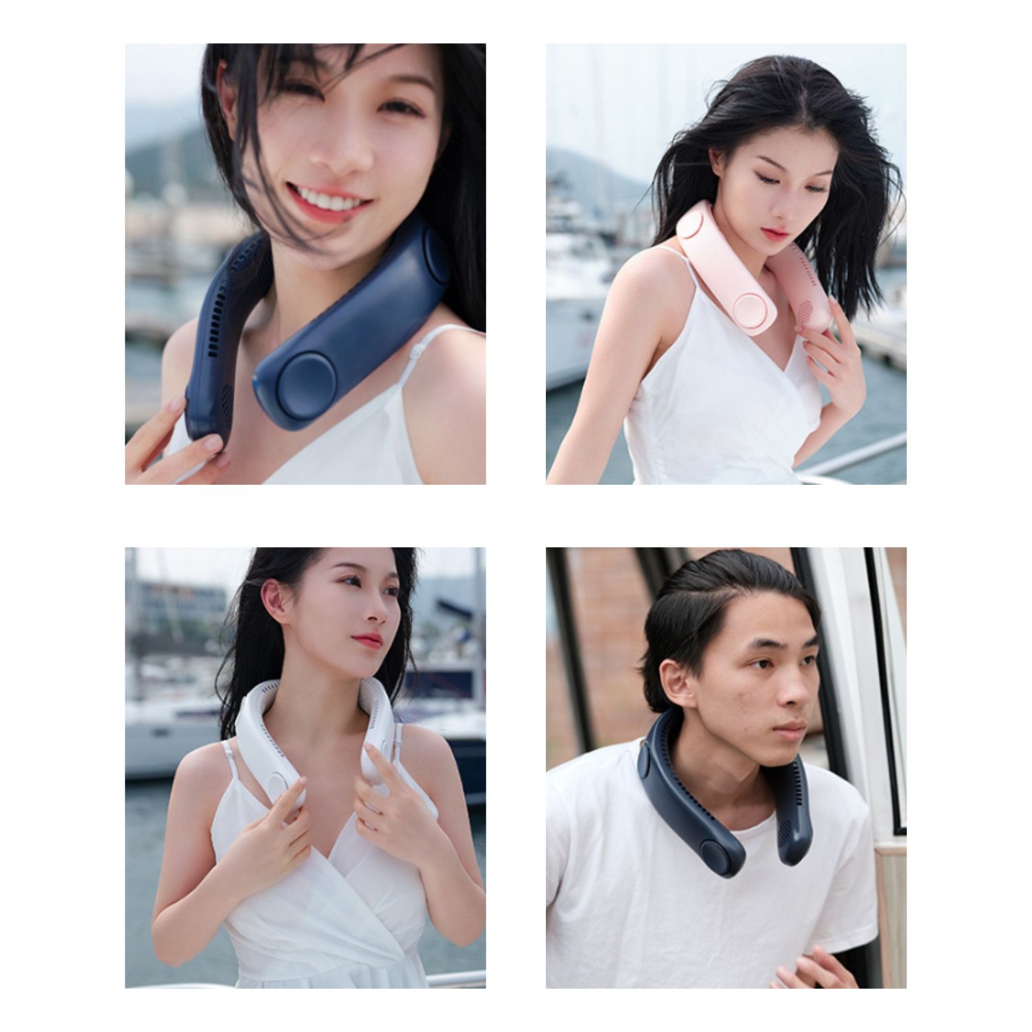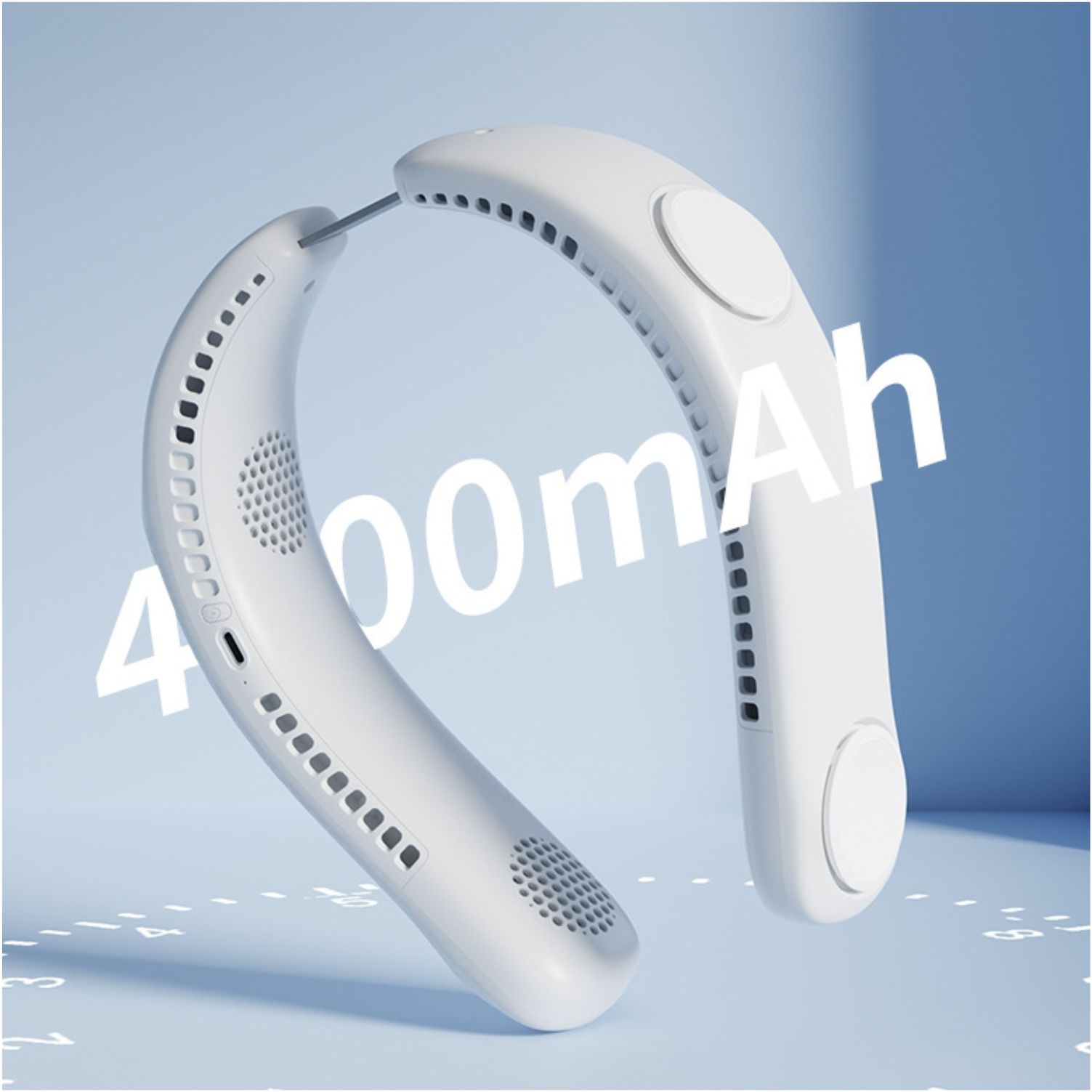 4 Fans Design : With the help of innovative four turbo fans and a total of 68 large-diameter air outlets, the neck fan increases the air volume by 100%, providing powerful and steady wind. Airflow comes out both upward and downward, which achieves rapid cooling of the neck and face