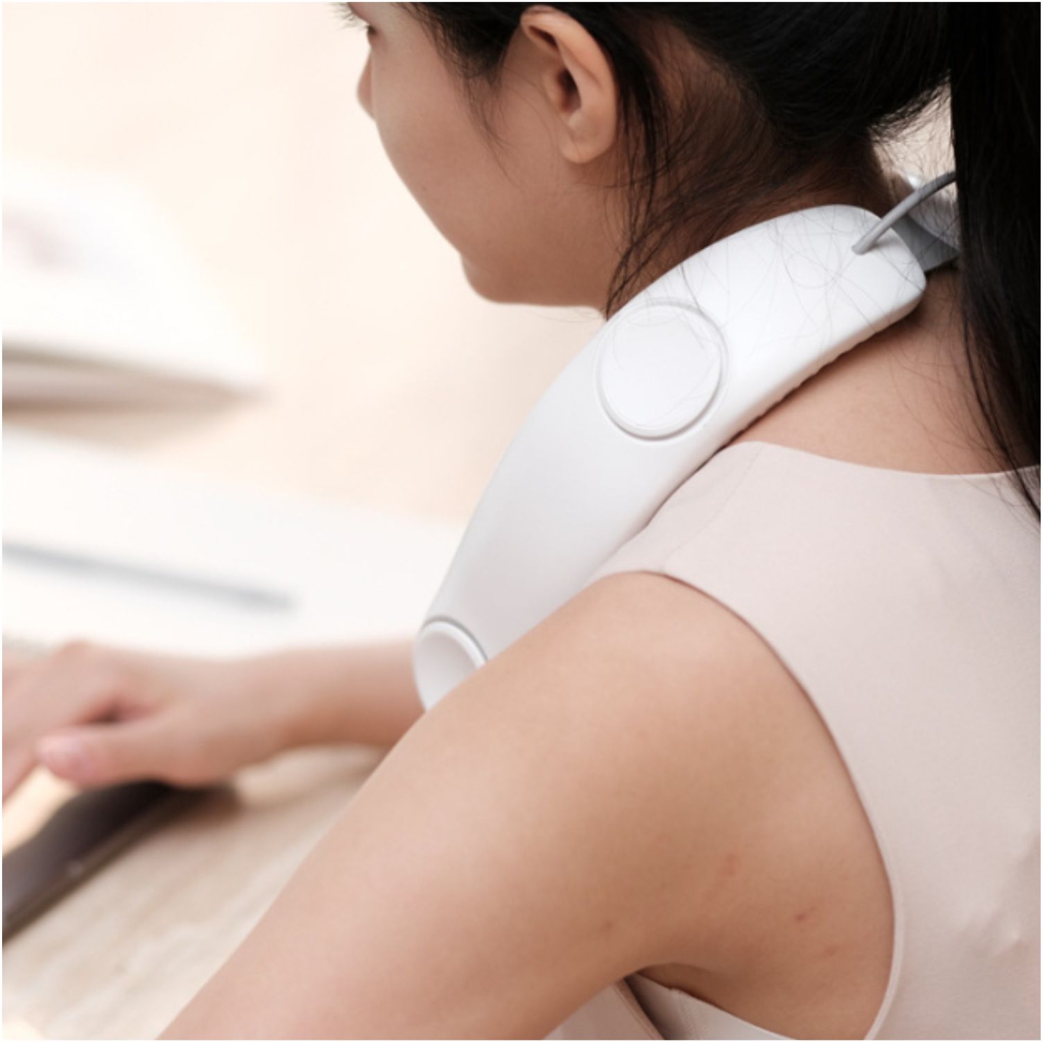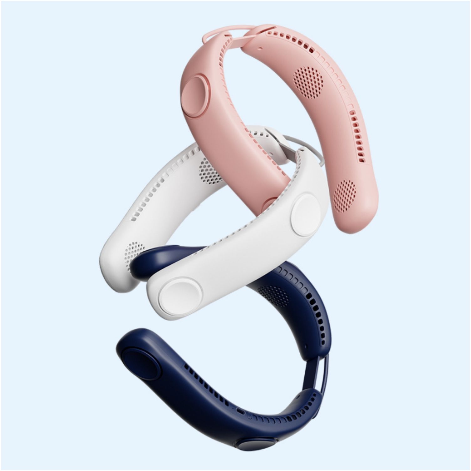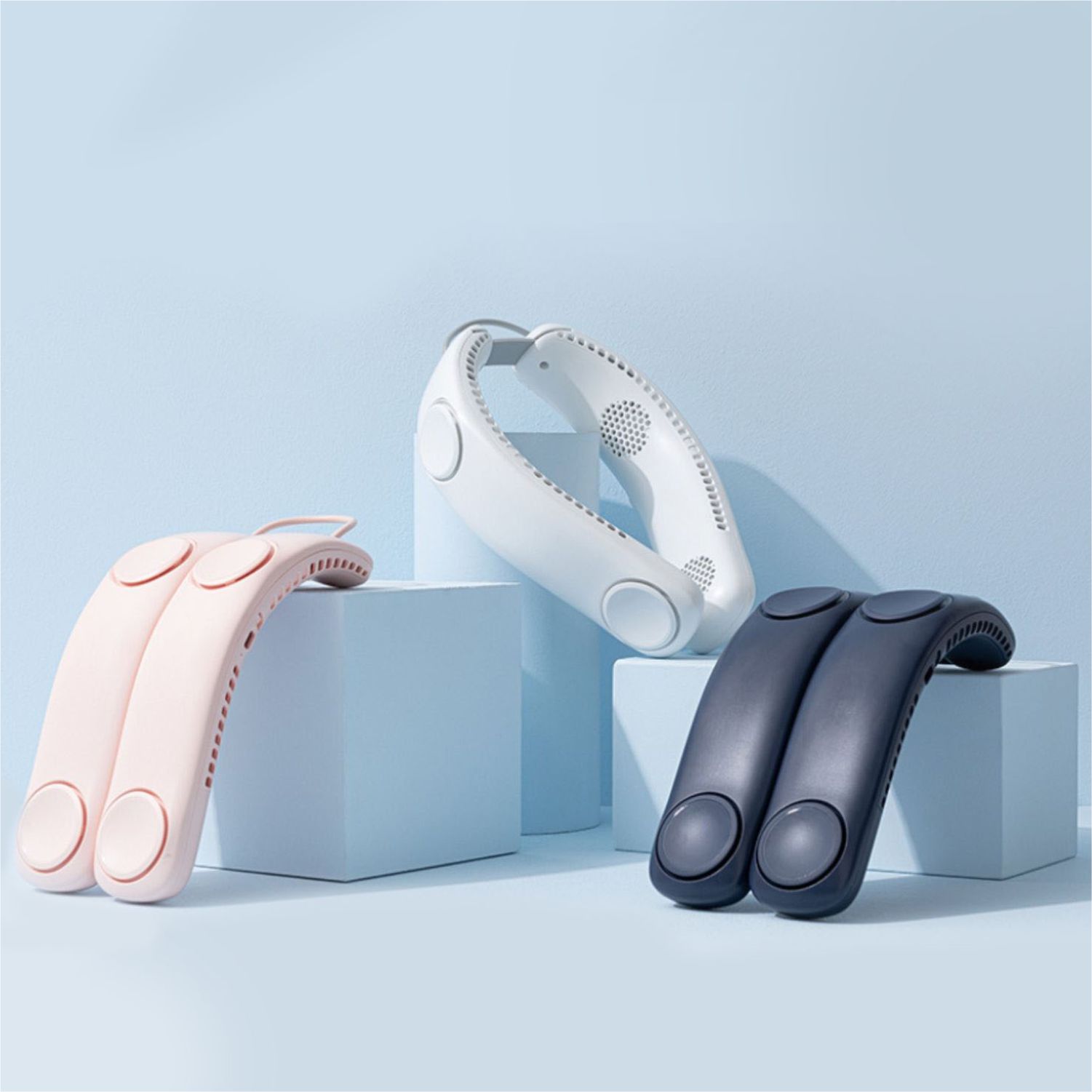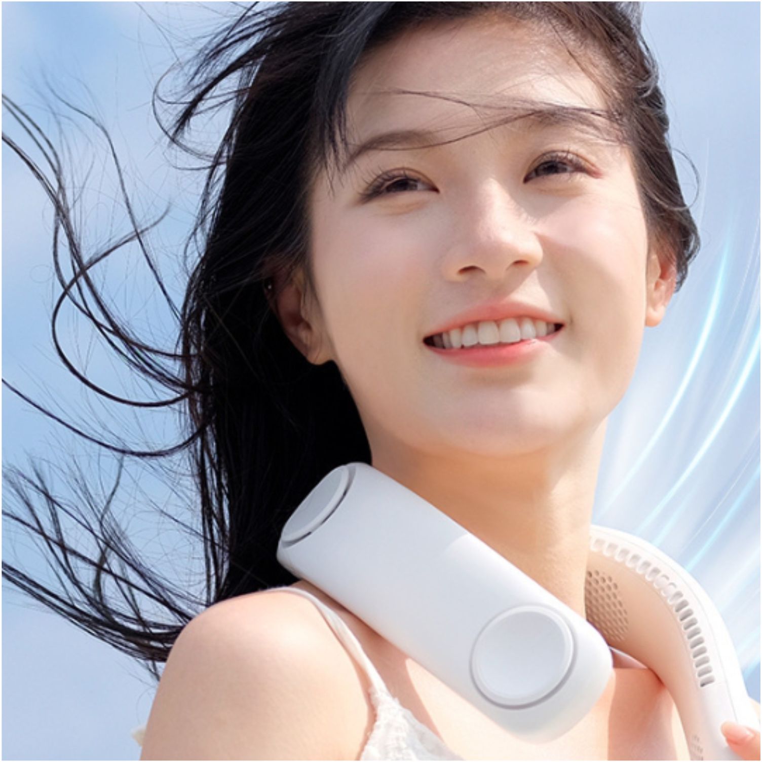 4 Fans Design : With the help of innovative four turbo fans and a total of 68 large-diameter air outlets, the neck fan increases the air volume by 100%, providing powerful and steady wind. Airflow comes out both upward and downward, which achieves rapid cooling of the neck and face