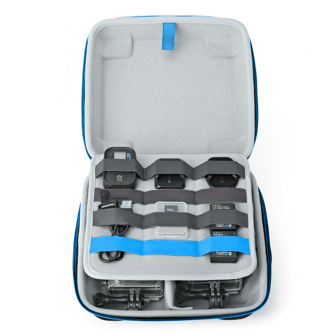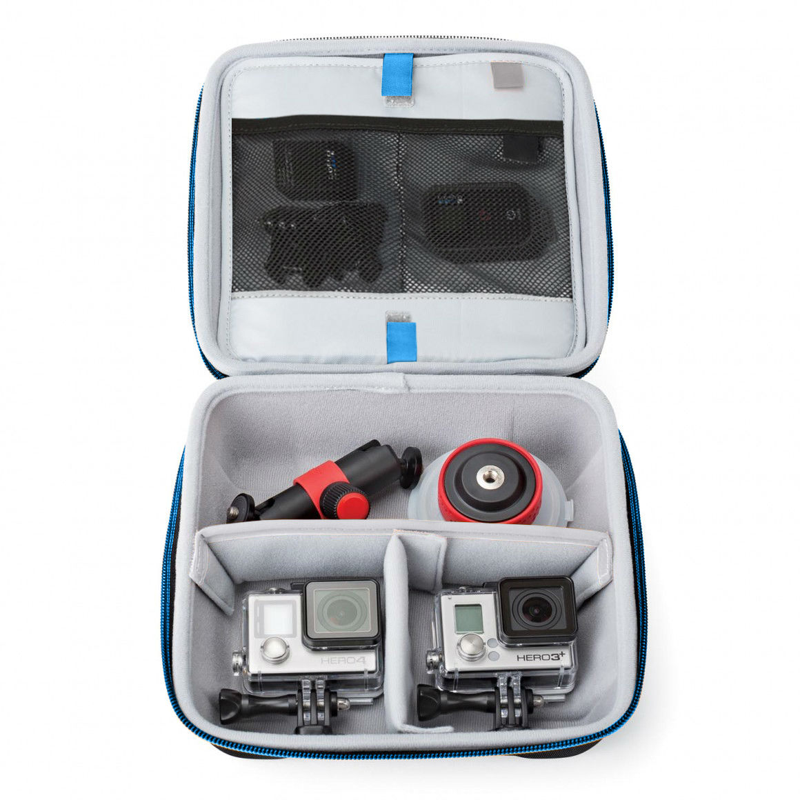 Separate storage space for action camera and mount accessories