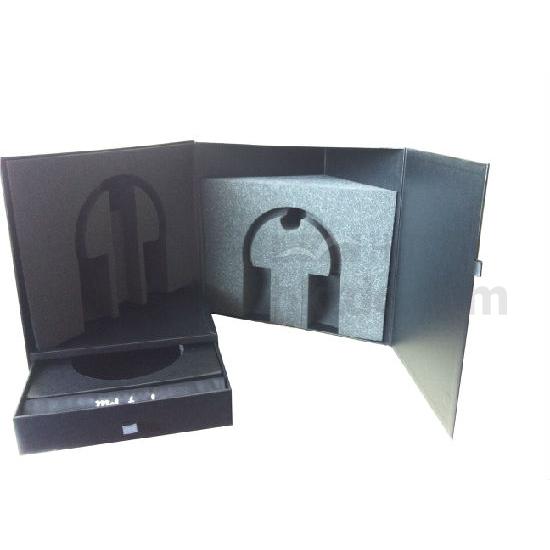 * Remarks: this box is designed for head-phone packing, other than head-phone, the package is also including wire and manual. The head-phone is protected and fixed by moulded foam, wire and manual are placed inside drawer. The other challenge is the whole box very heavy, so the wholesale (single corrugated board) box is needed on each package.