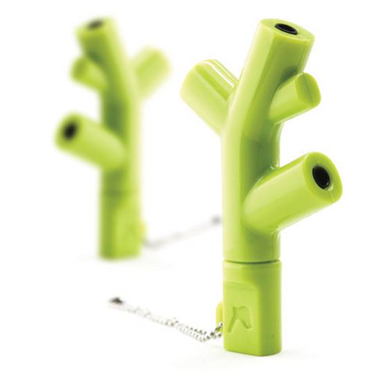 This fancy headphone splitter provides multiple-user listening enjoyment by connecting two headphones to a single musical device. It comes with a trendy stem design for added style. This indispensable accessory lets you share your favorite music and videos with a friend.