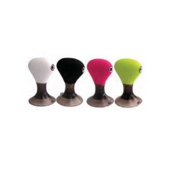 This headphone splitter comes in a fanciful design. The body features a smoothly shaped top with the headphone jack in appealing color. The circular base offers high stability. This portable design is ideal for travelers.