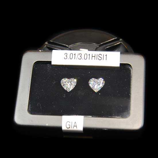 The pair of heart-shaped diamonds shows dazzling glamor. They are delicately crafted with great attention to details. This pair of diamonds is wonderful for adding a romantic touch to any earring design.