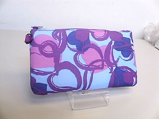 Heart printed polyester cosmetic bag.