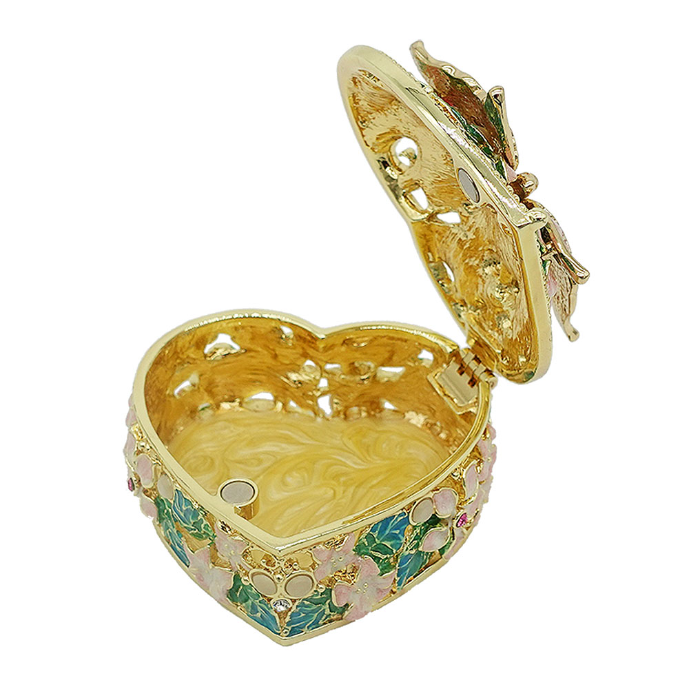 Metal floral trinket box or jewelry box with enamel and rhinestone decoration