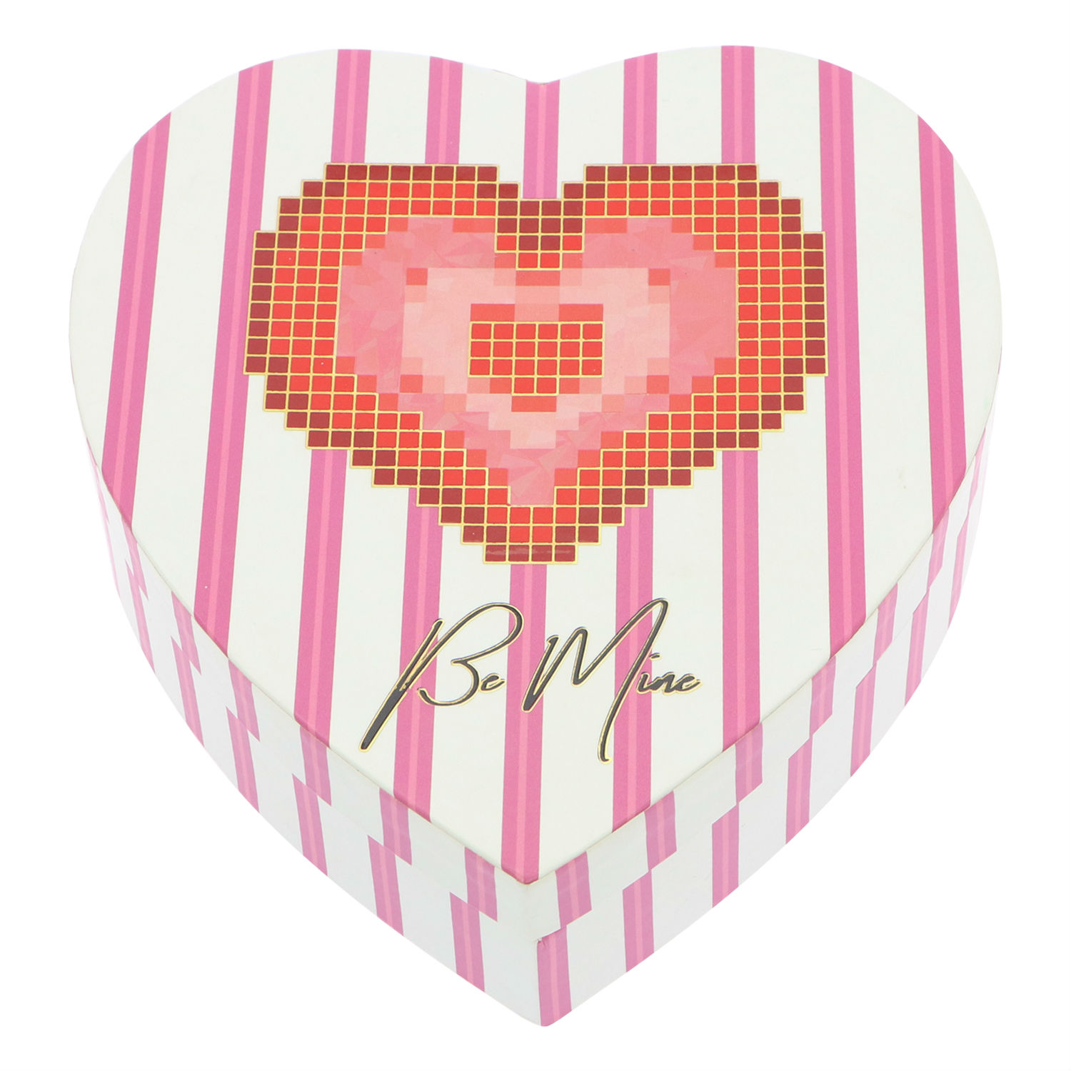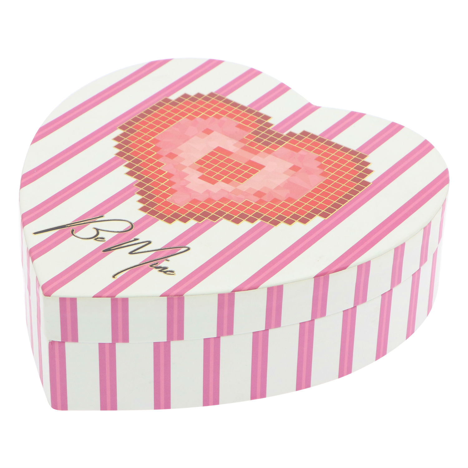 - The words “be mine” are printed below the heart-shaped pattern.
