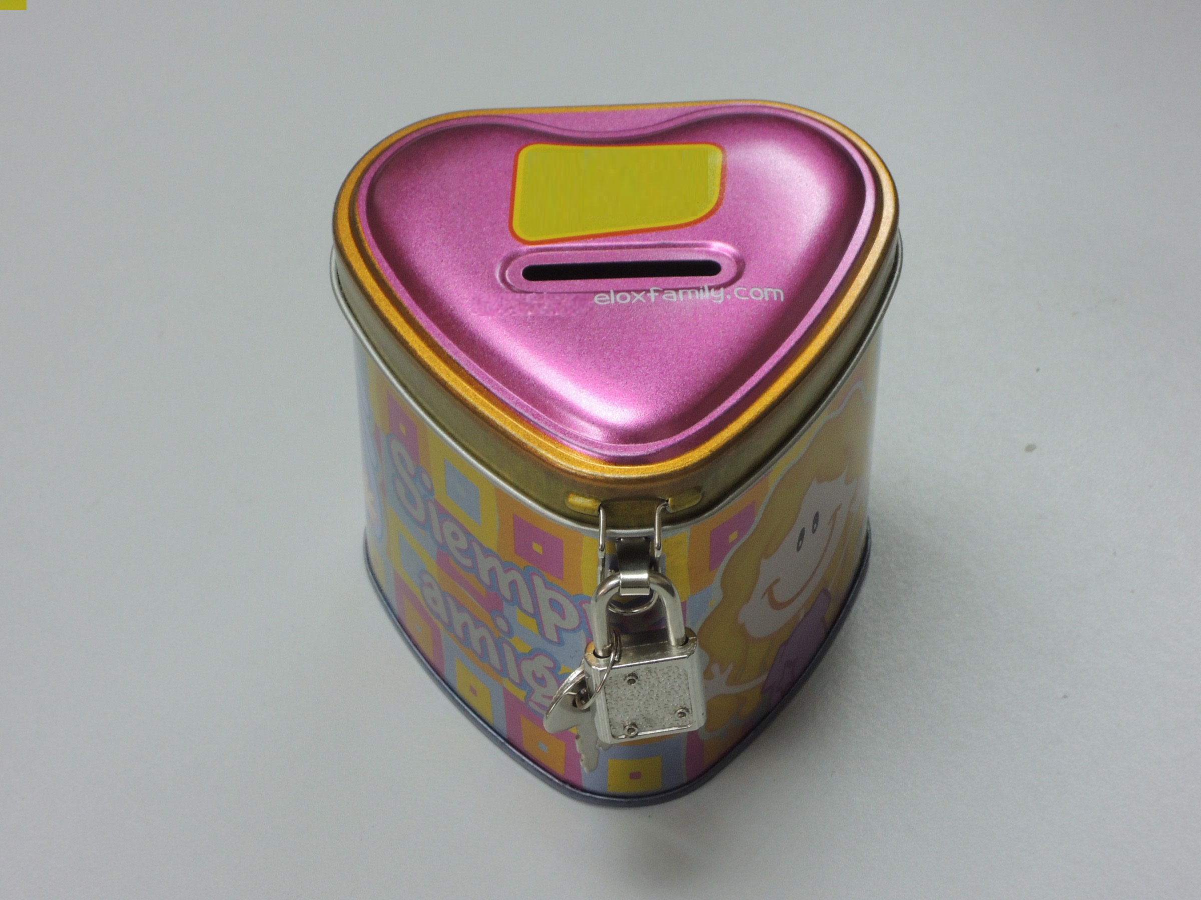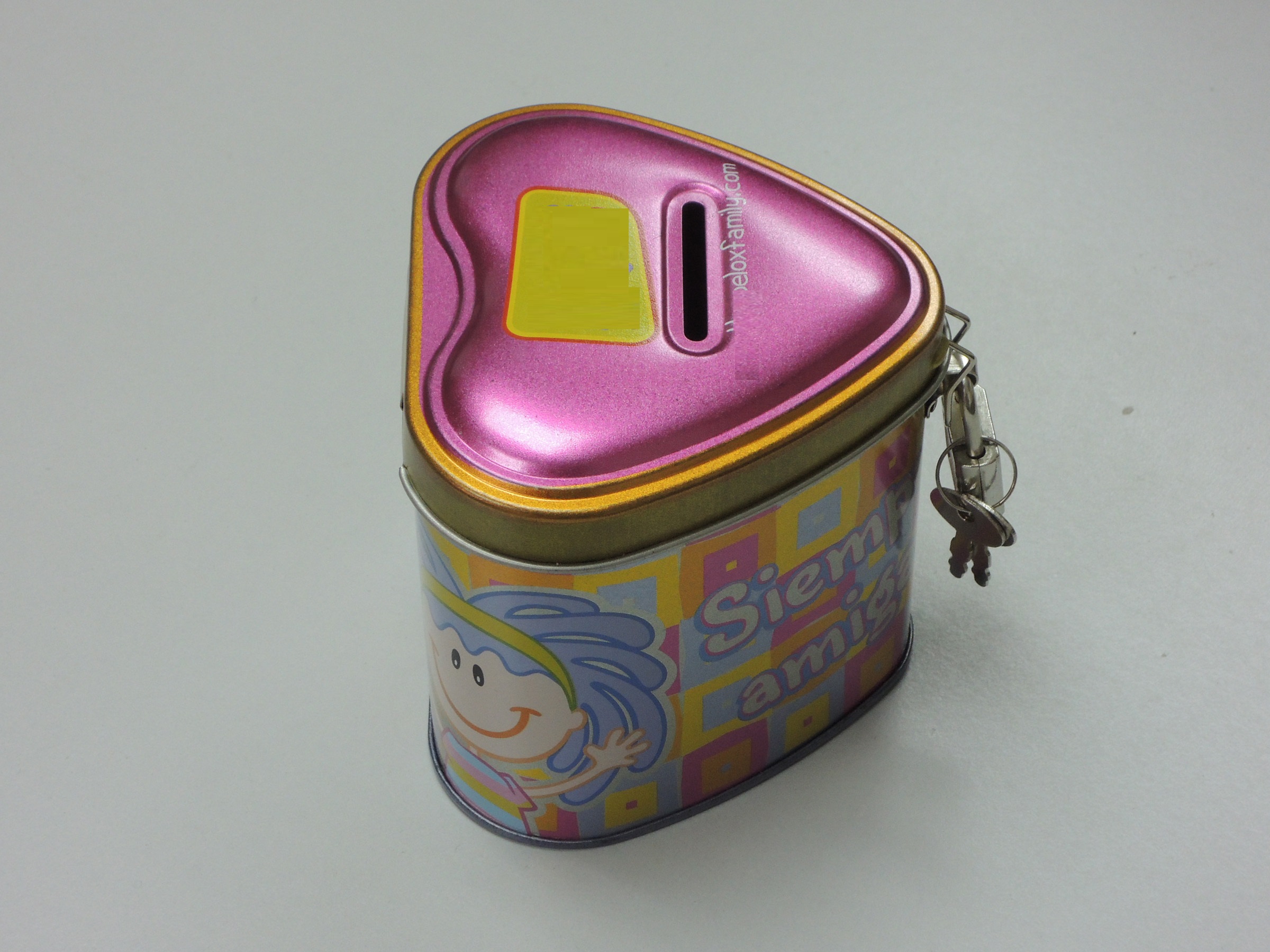This money bank can be with vivid design printing on the exterior, it is with money slot on the lid, with lock and keys. This top-quality box also can be great packing material for candy, toys, gifts, etc.