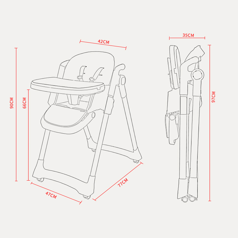 5. 5-gear height adjustment, Backrest and pedal can be adjusted in 3 gears, switch instantly for dining or resting, handle eating, drinking, playing, and sleeping all with one chair