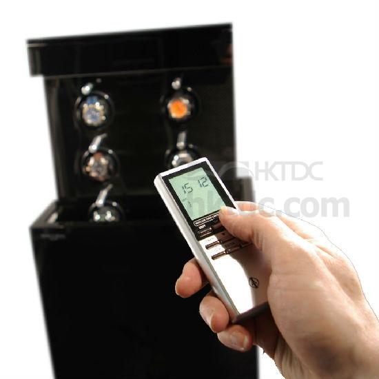 The Guardian from Heisse and Sohne's Exclusive Line is captivating with its so far unbeaten level of technological and technical mastery. As if by magic the interior of the Guardian appears in all its glory at the touch of a button. The timepieces emerge bedded in high-class carbon with a unique glow. The Guardian's LED light in stainless and hydraulics can be controlled remotely by radio. The variety of functions of these watch winders guarantees careful and continuous winding of every automatic watch.