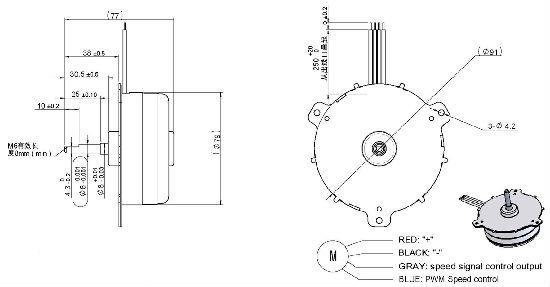CW & CCW, Signal function available, Locked rotor protection, Stepless speed regulation, Low noise, Low EMI, Long life 10000-50000hrs