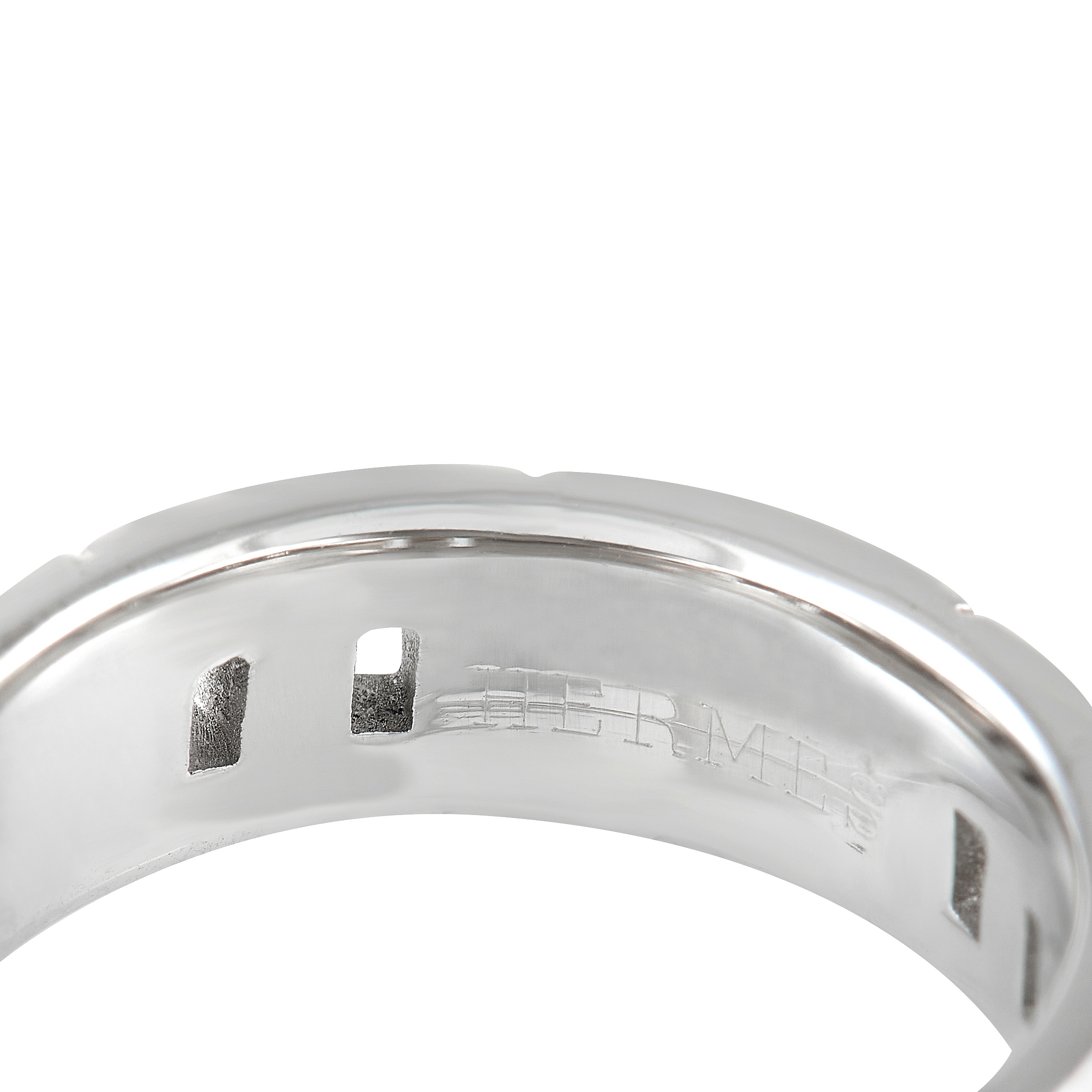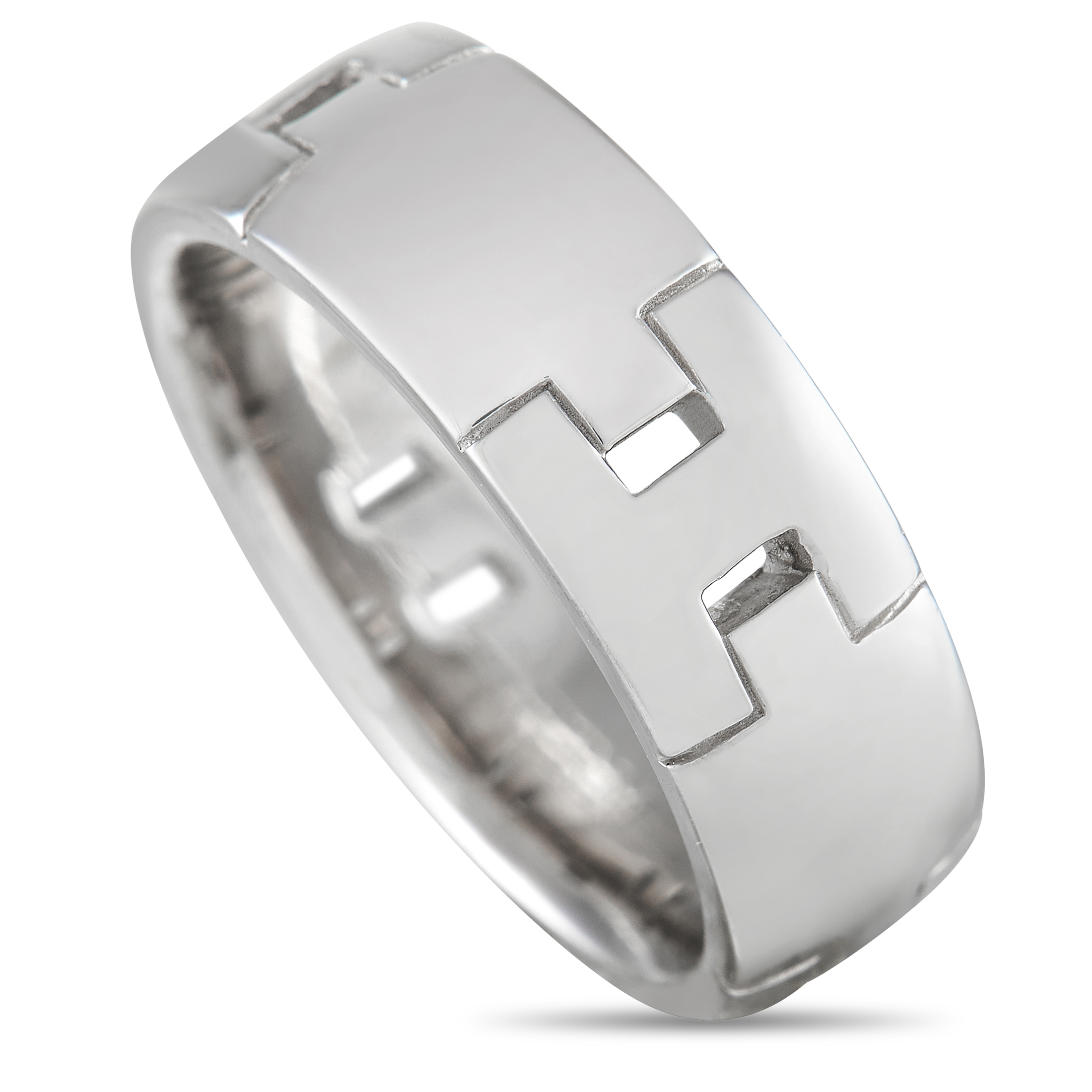 This sleek, simple 18K White Gold Hermes band ring is an understated piece that will forever make a statement. Accented by the brand’s iconic “H” symbol, it features a 6mm wide band and a 2mm top height.