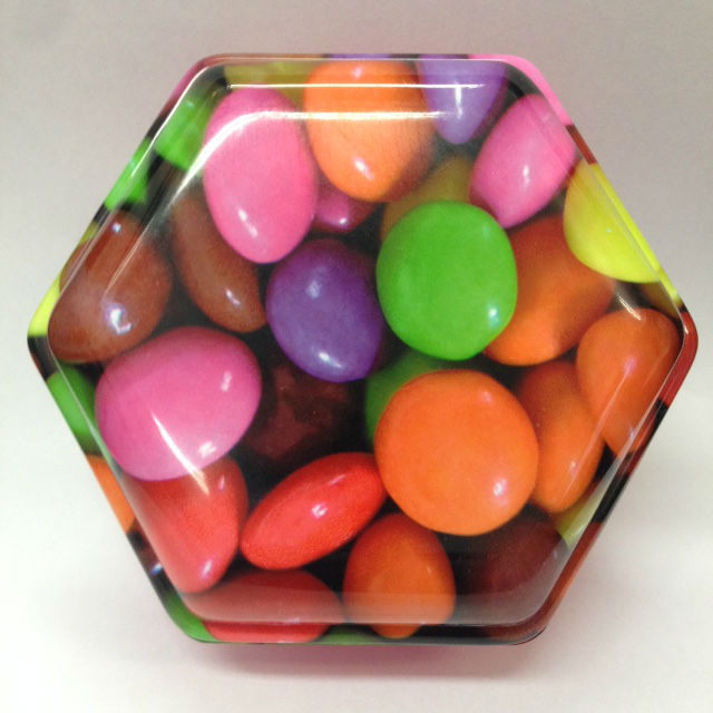 Content --- 3 pcs of Hexagon Shape Candy Printed Plastic Boxes