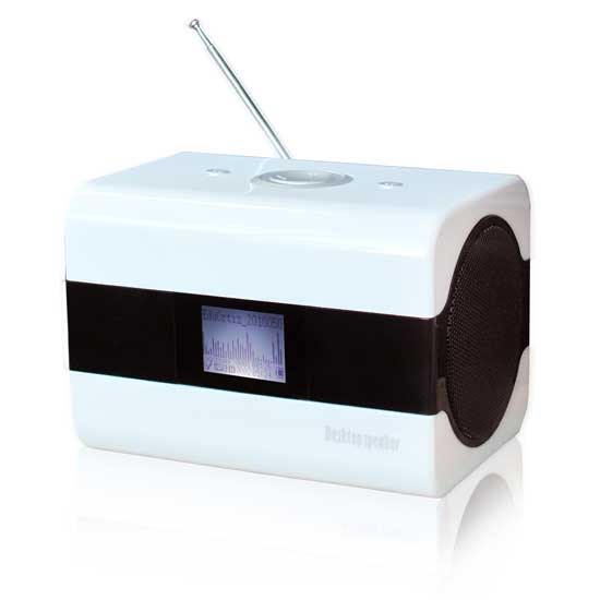The streamlined Hi-Fi speaker features contrasting black and white hues for a retro style. It offers connection hubs to read music files from USB flash drives, SD and MMC cards. This Hi-Fi speaker comes with a remote control for convenient use.