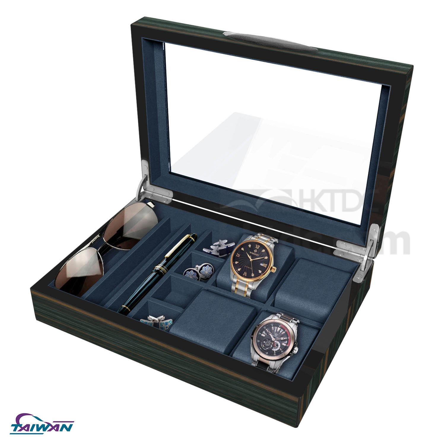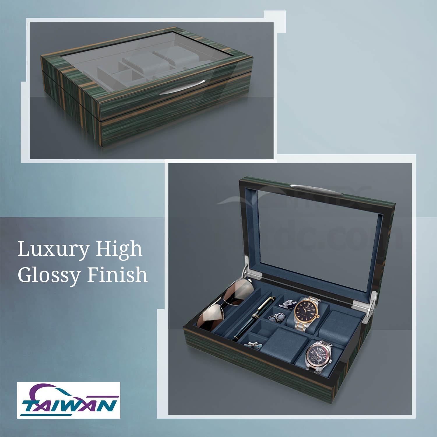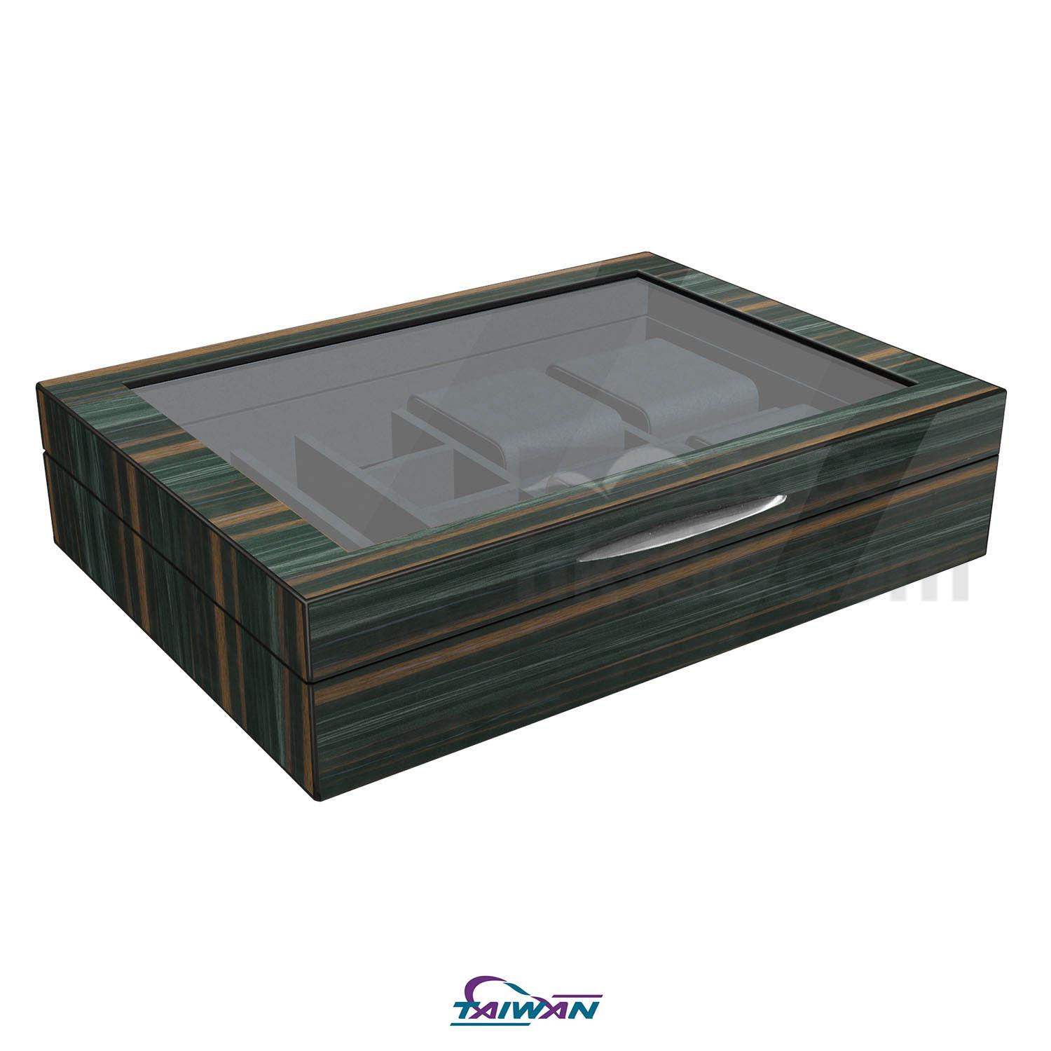 Hi-Gloss Dark Forest Macassar Men's Jewelry Box With Glass-Top