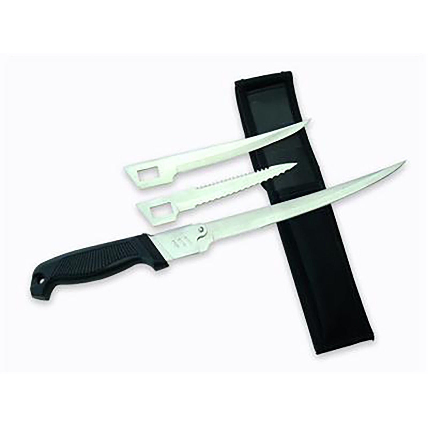 Fishing fillet knife with 3 different removable high quality blades with holster includes the following features: