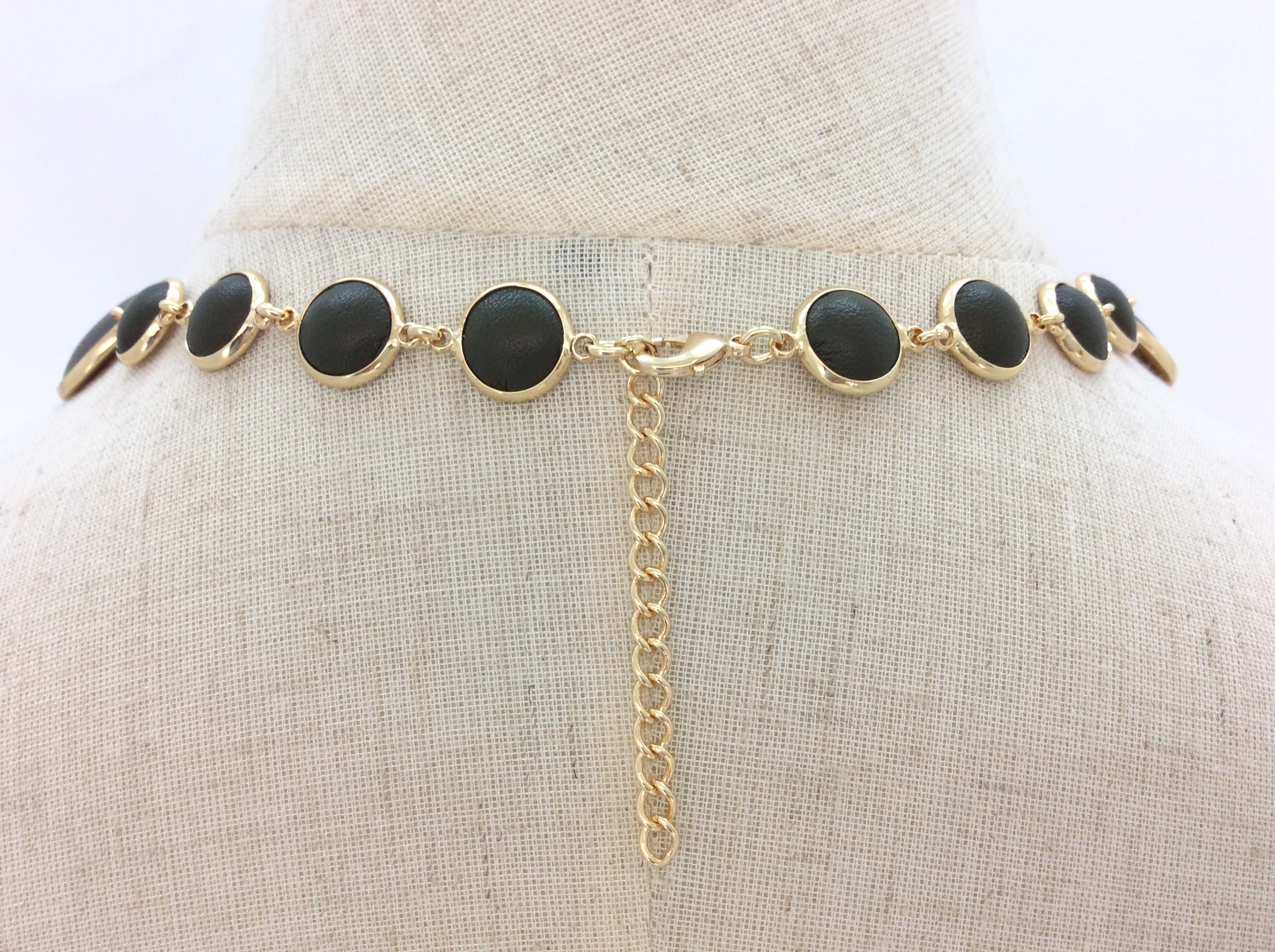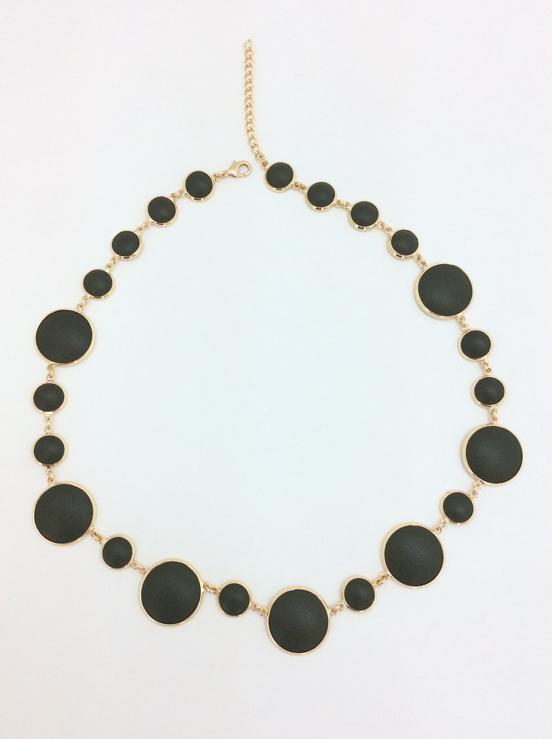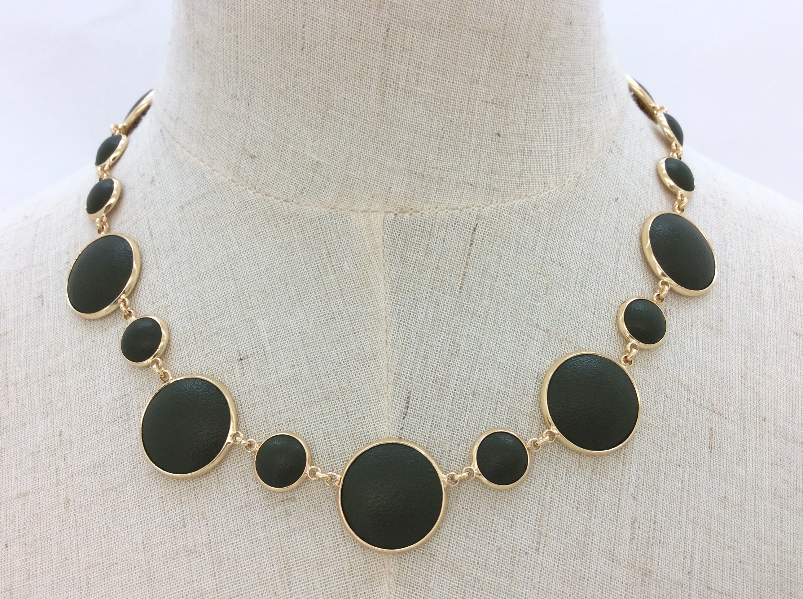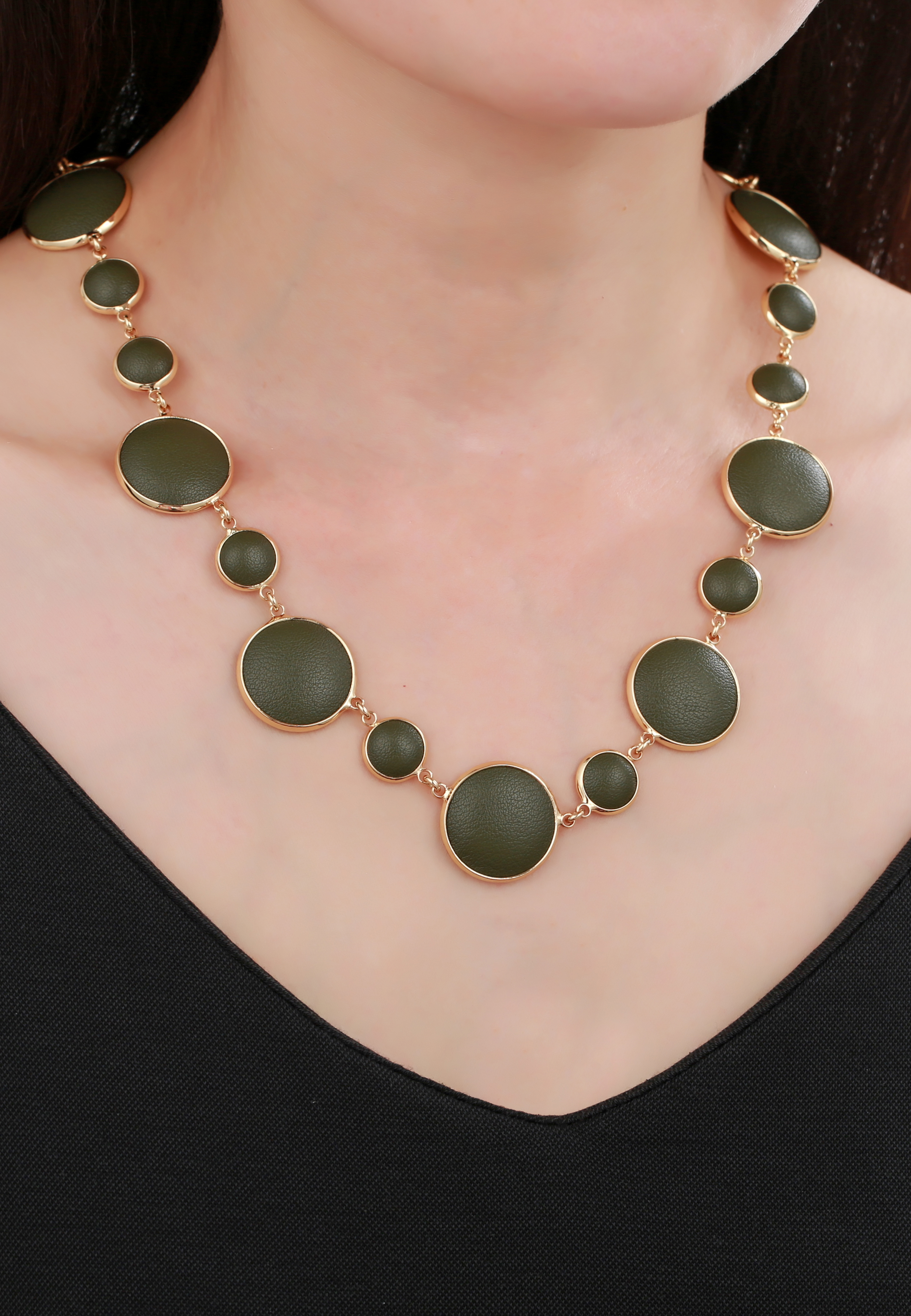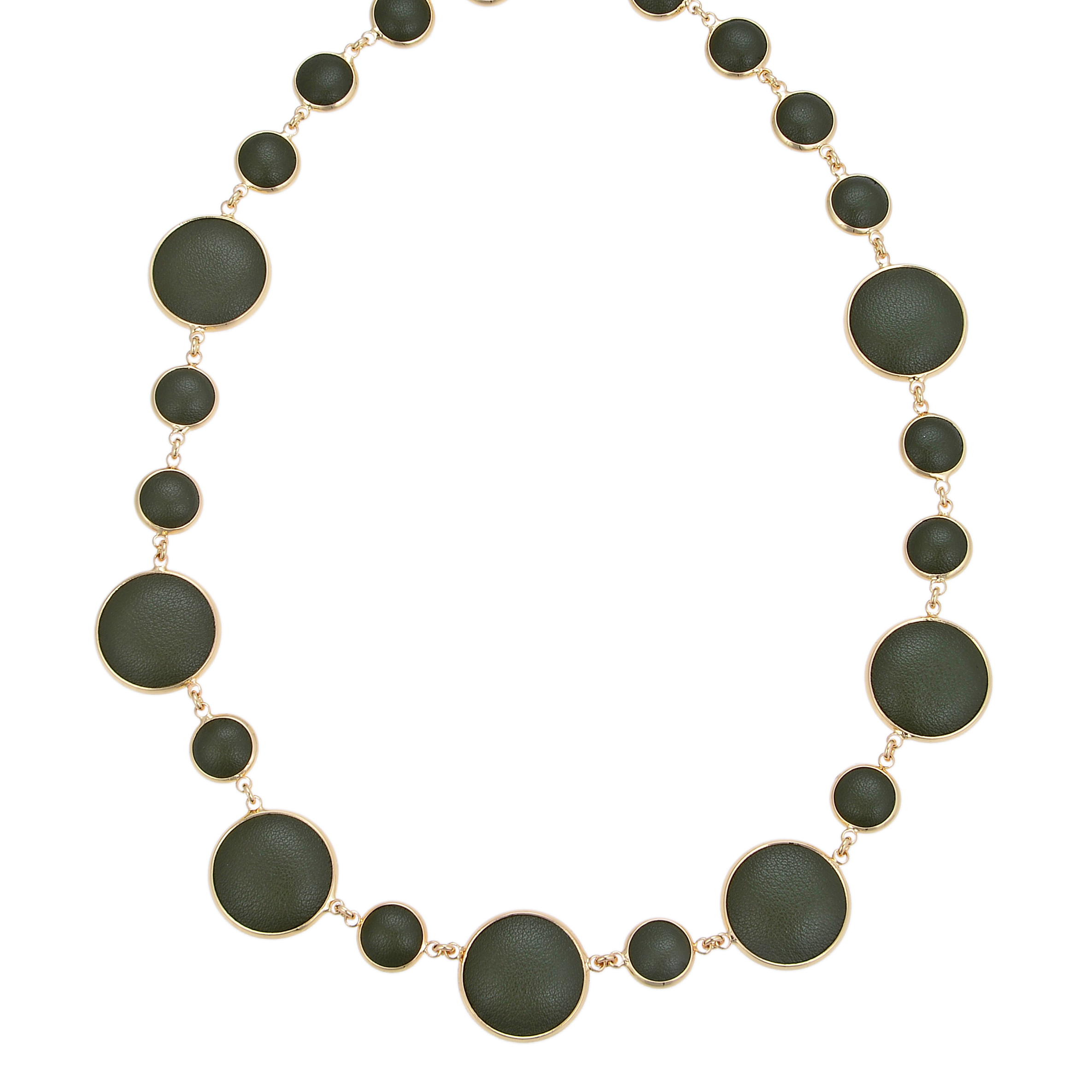 High-End Round Necklace Green Cow Leather Metal Charm Necklace